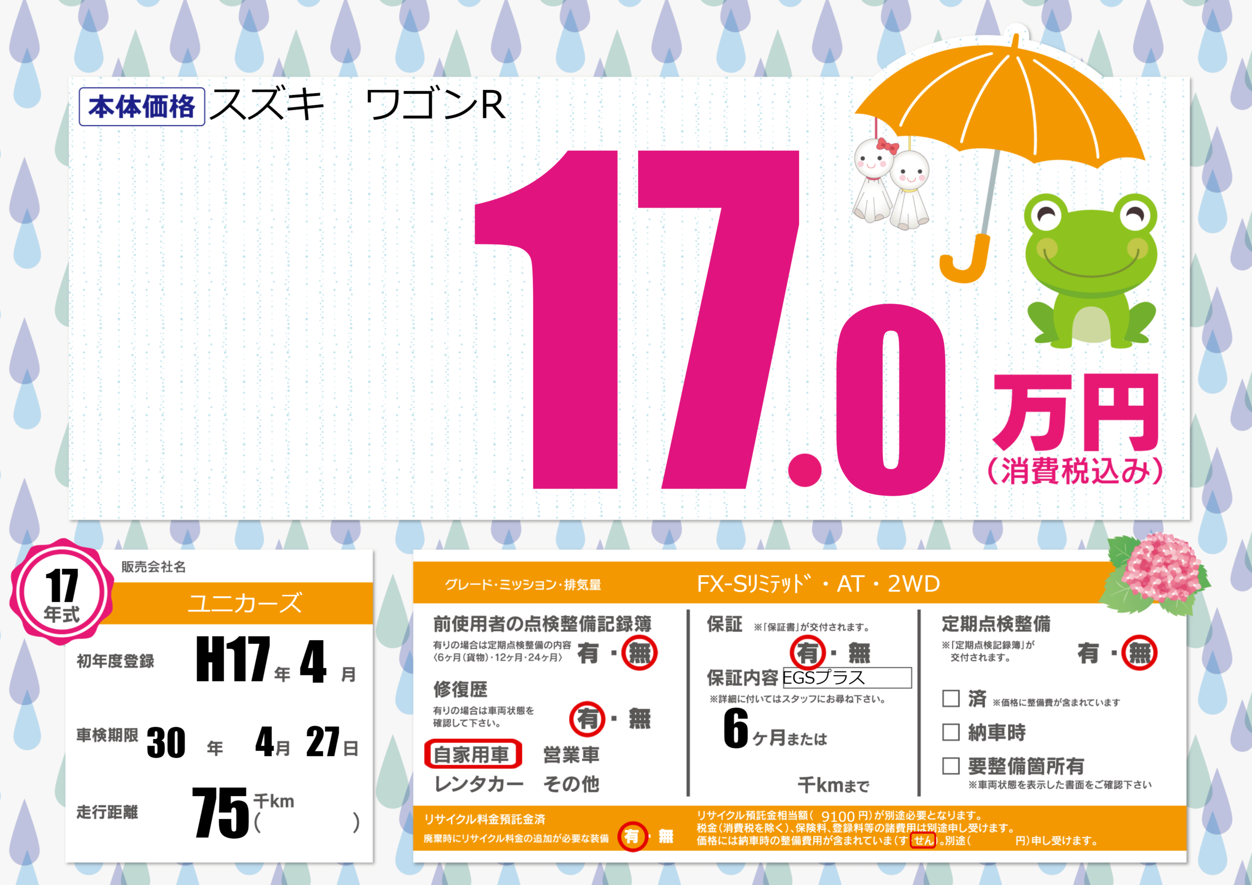 H17年式 スズキ ワゴンR FX-Sリミテッド 入荷しました。
