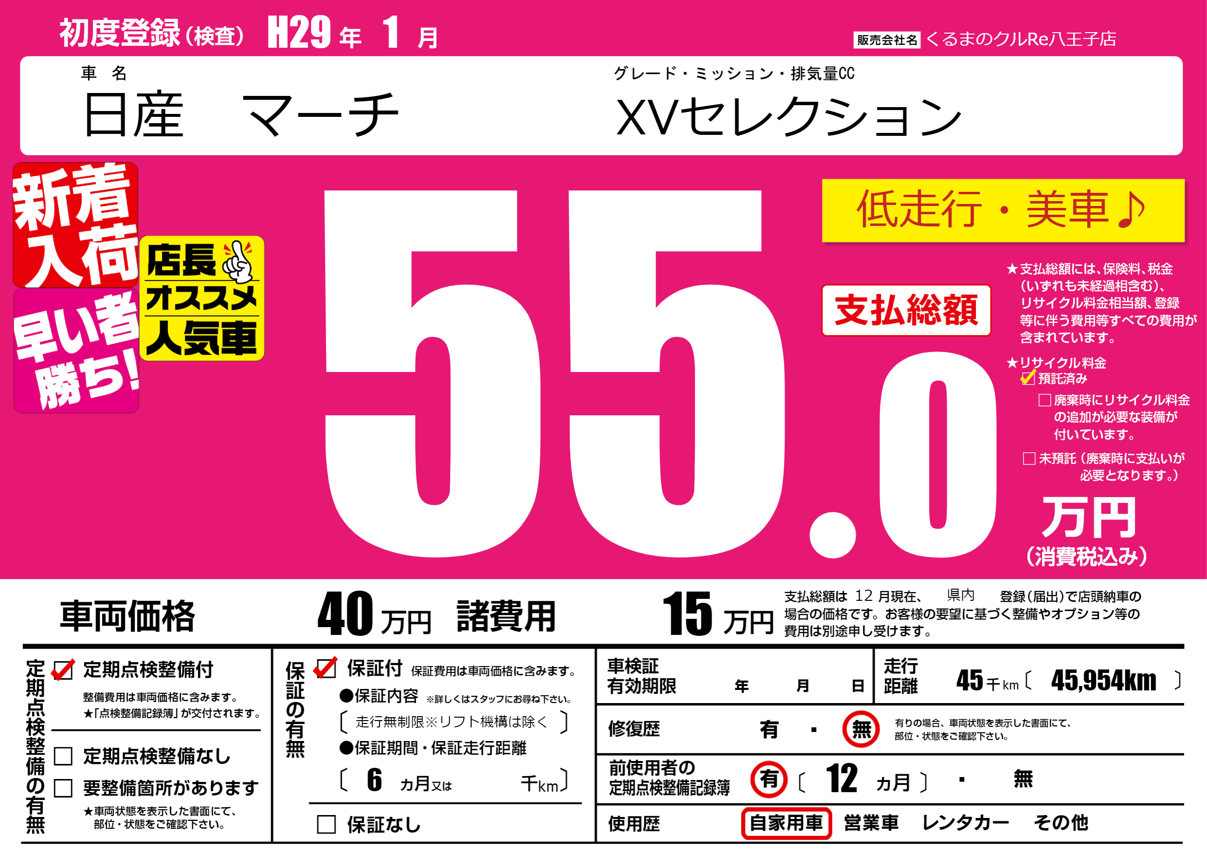 | 走行キロ | 4.5万km | ||