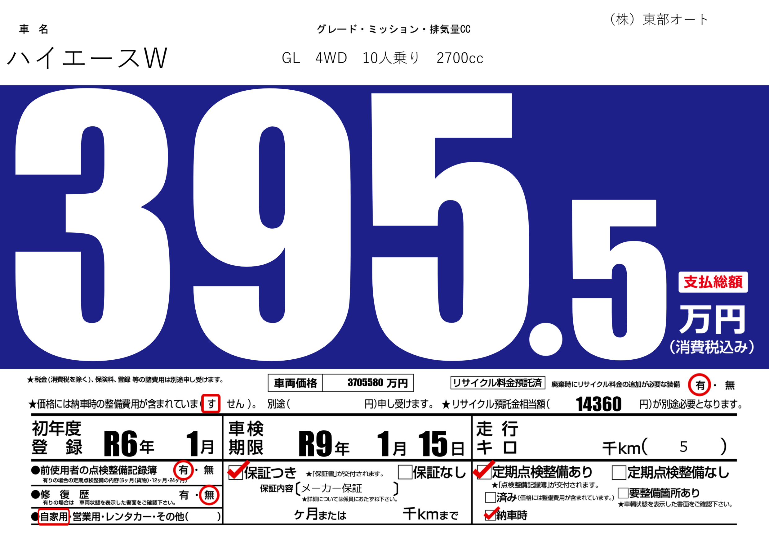 車検制限 R9年 1月 15日