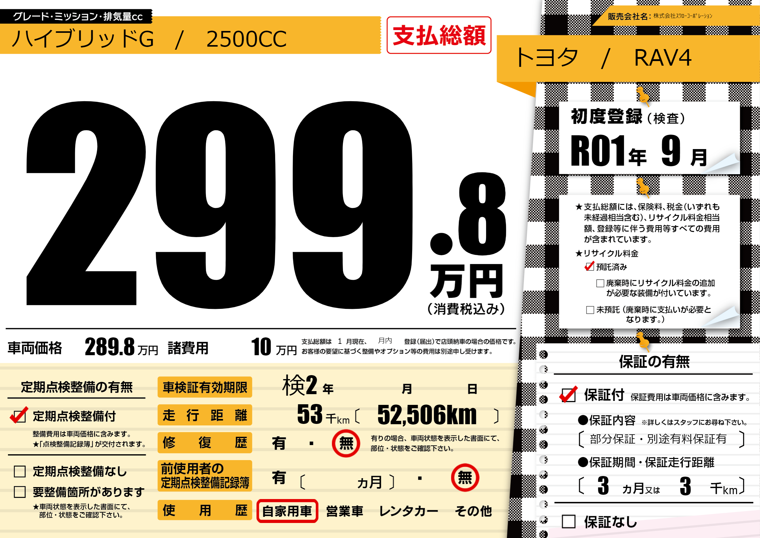 保証付き 保証内容(部分保証・別途有料保証有) 3ヶ月または(3)千kmまで |