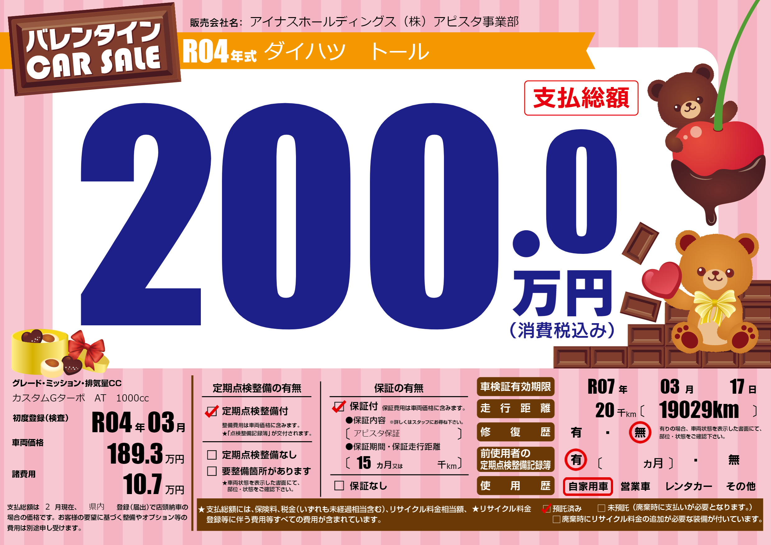 | 定期点検整備 | 定期点検整備あり | ||