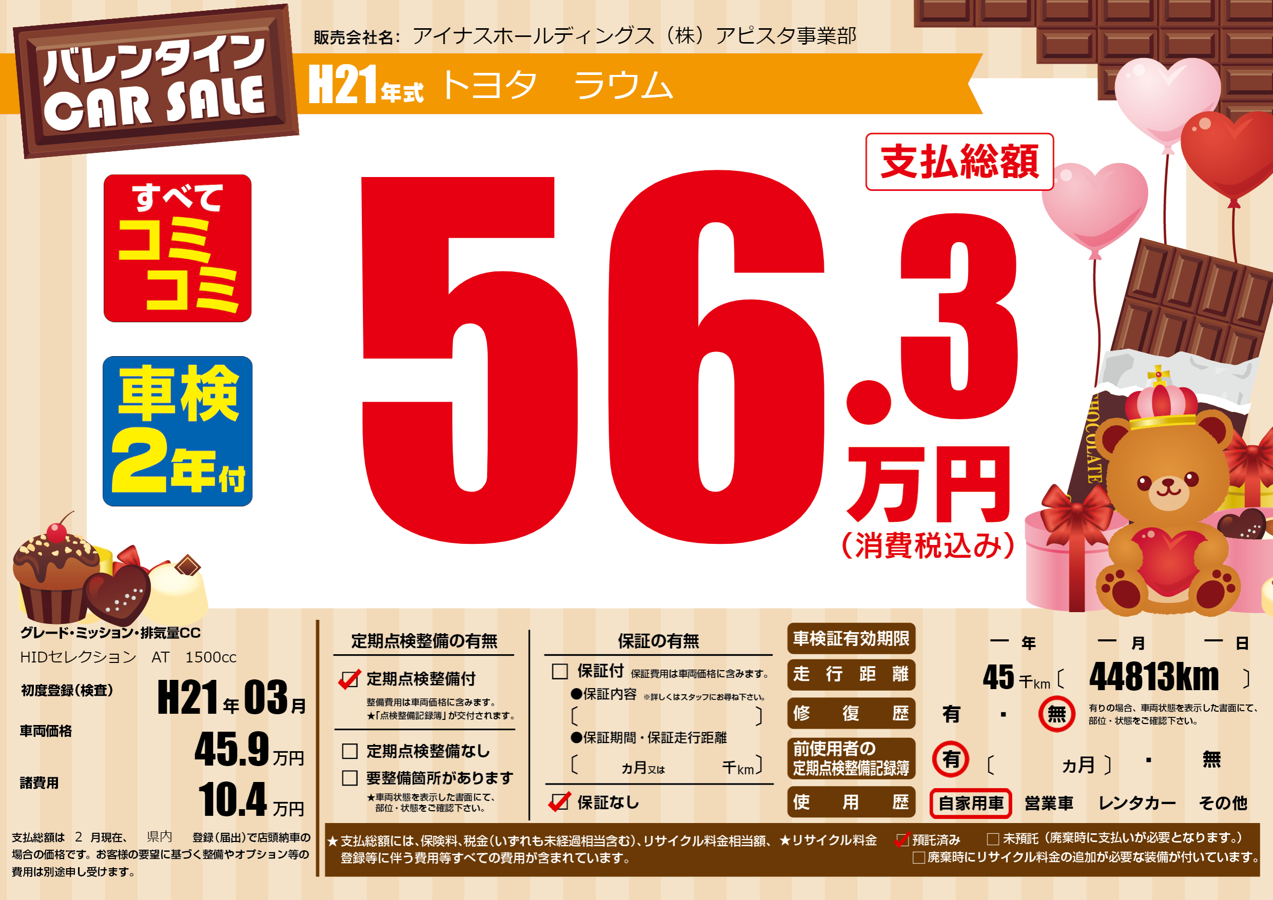 | 車名 | トヨタ ラウム | グレード ミッション 排気量 |