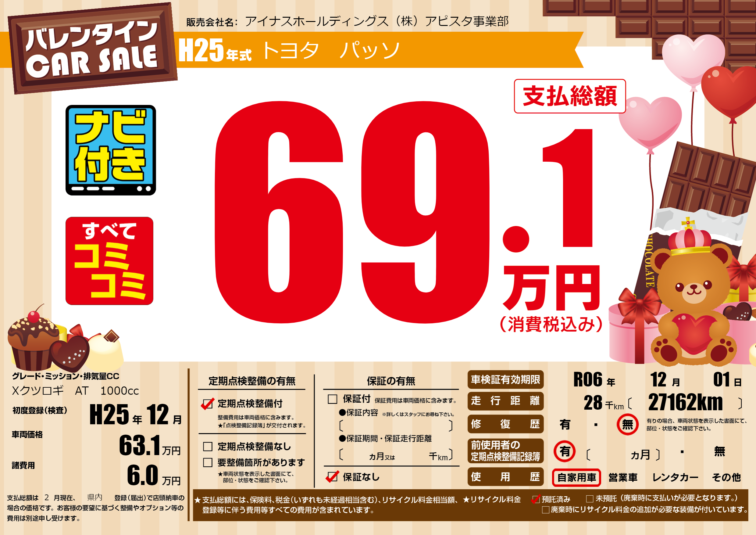 | 車名 | トヨタ パッソ | グレード ミッション 排気量 |