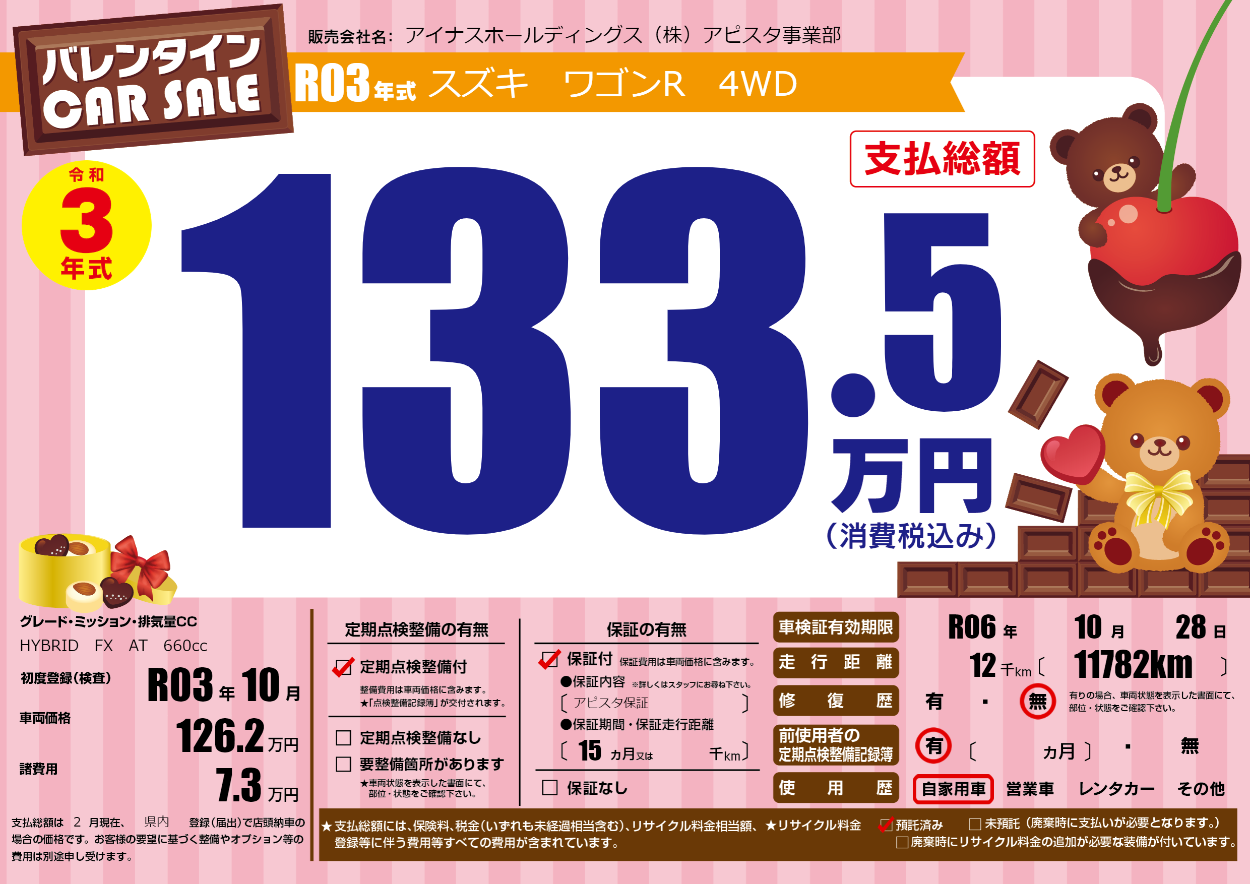 アイナスホールディングス(株)アピスタ事業部の展示車