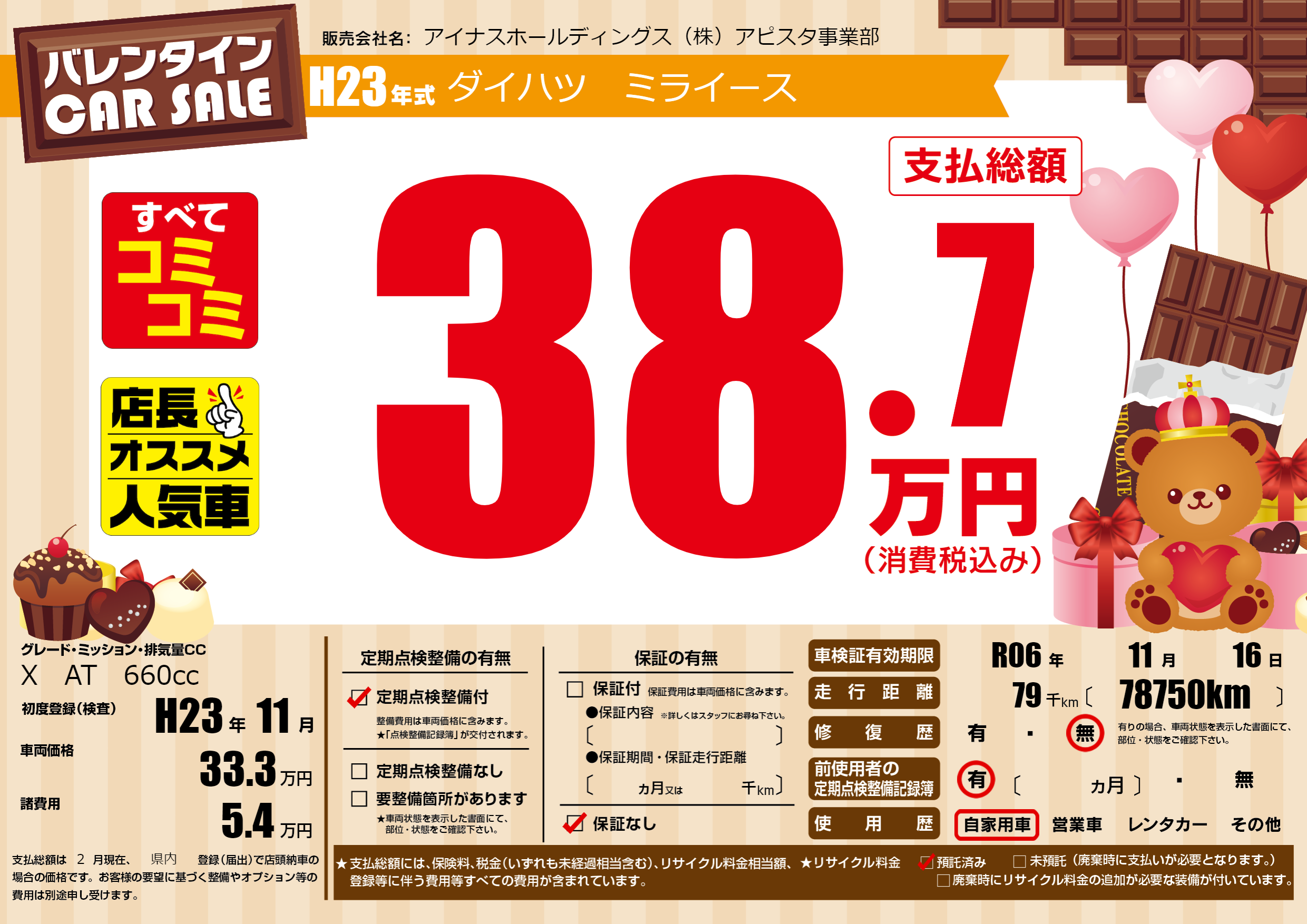 | 走行キロ | 7.9万km | 初年度登録 | H23年11月 |