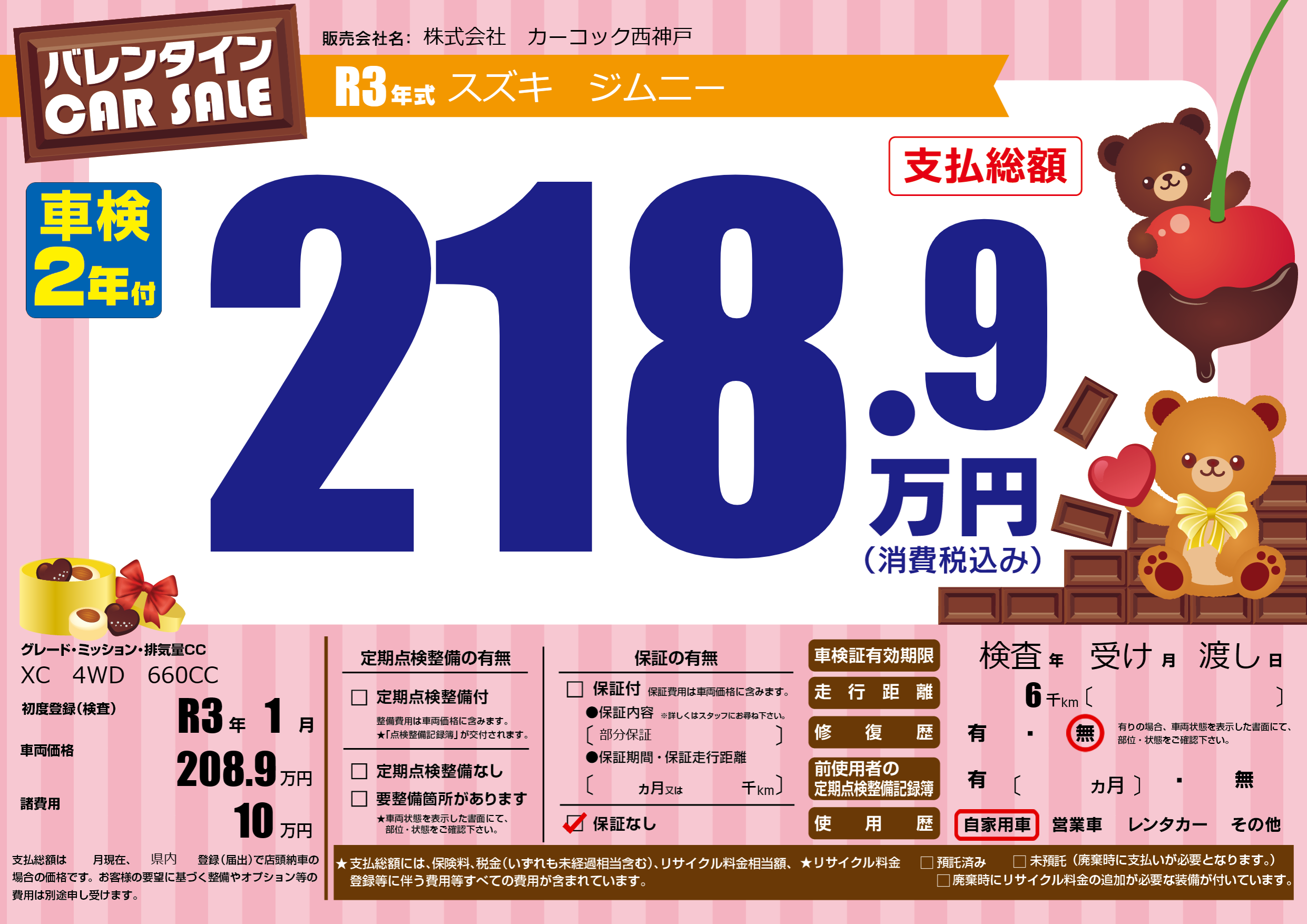 | 走行キロ | 0.6万km | 初年度登録 | R3年1月 |