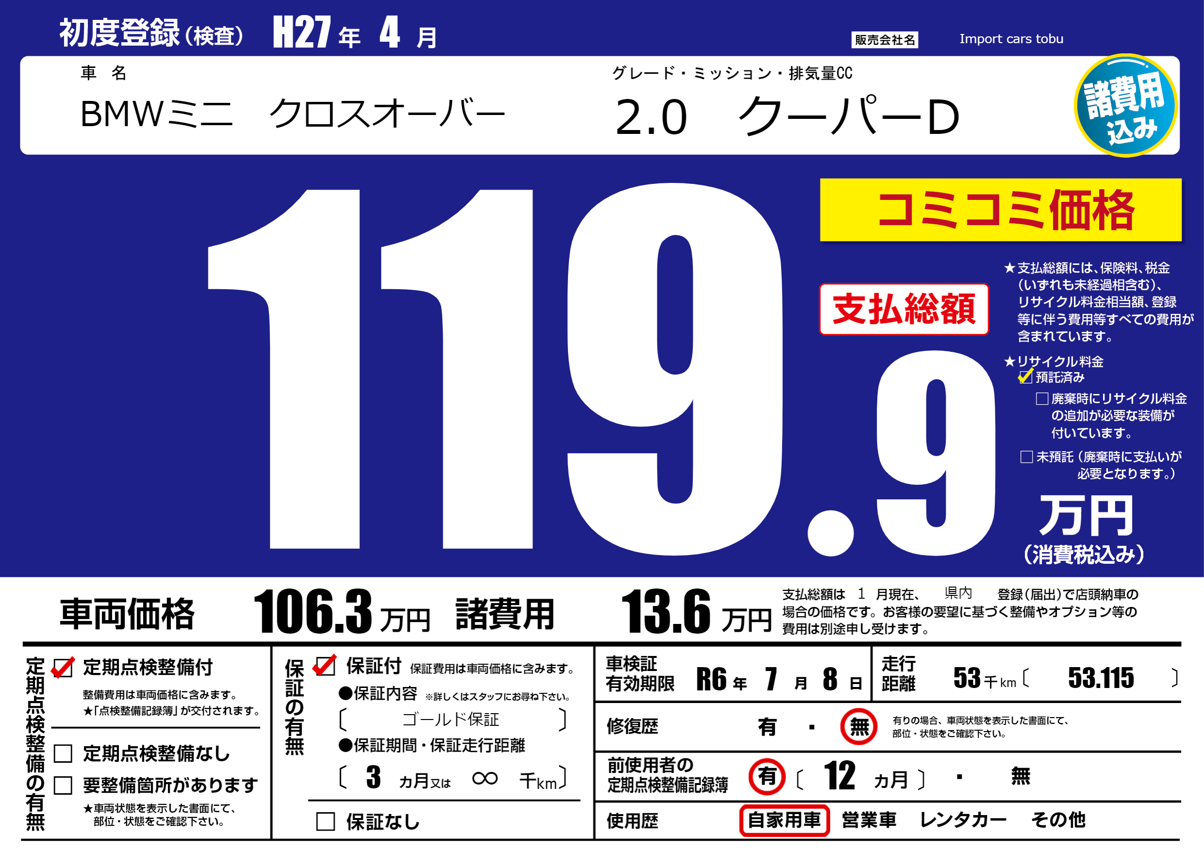 | 定期点検整備 | 定期点検整備あり | ||
