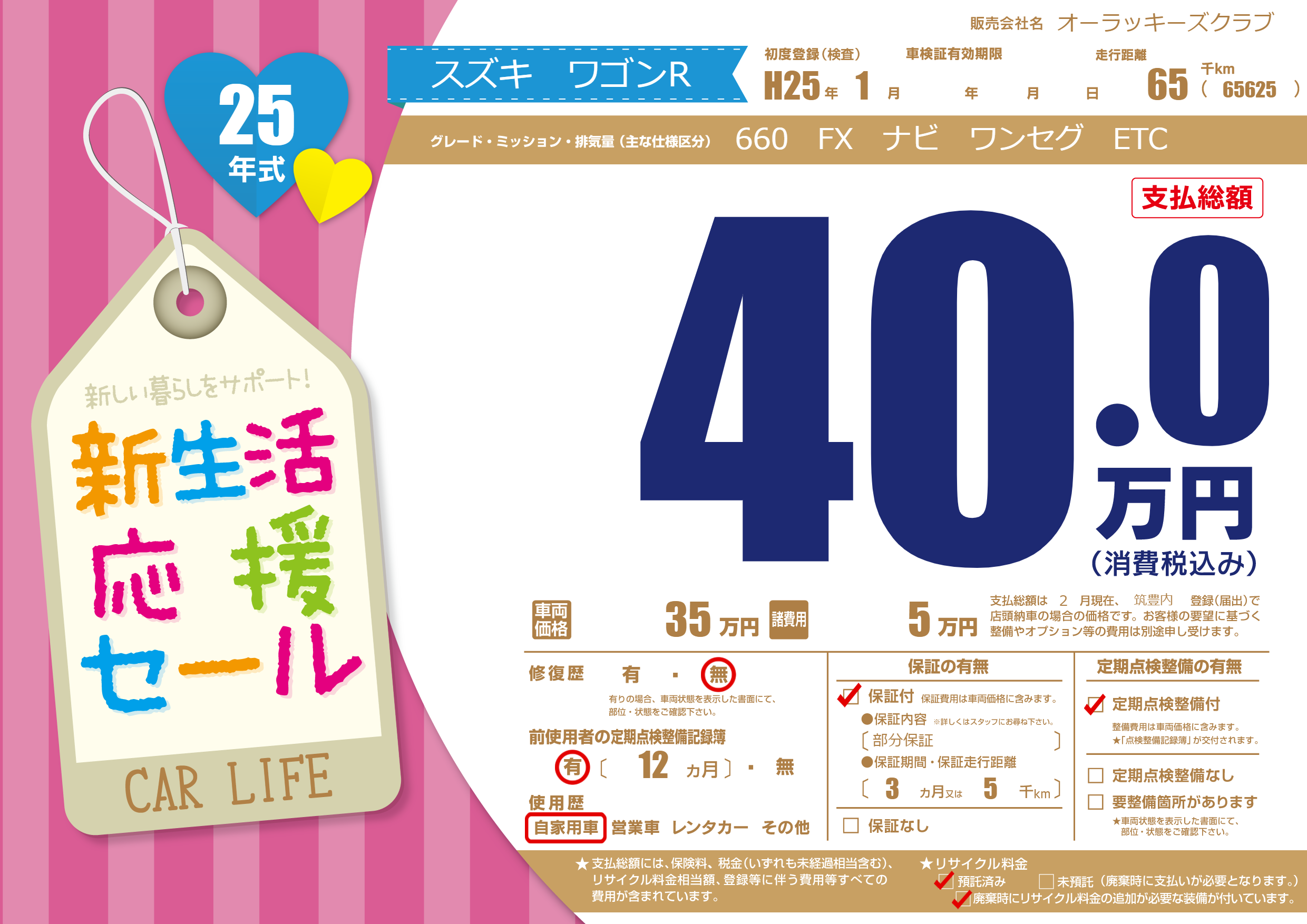| 定期点検整備 | 定期点検整備あり | ||