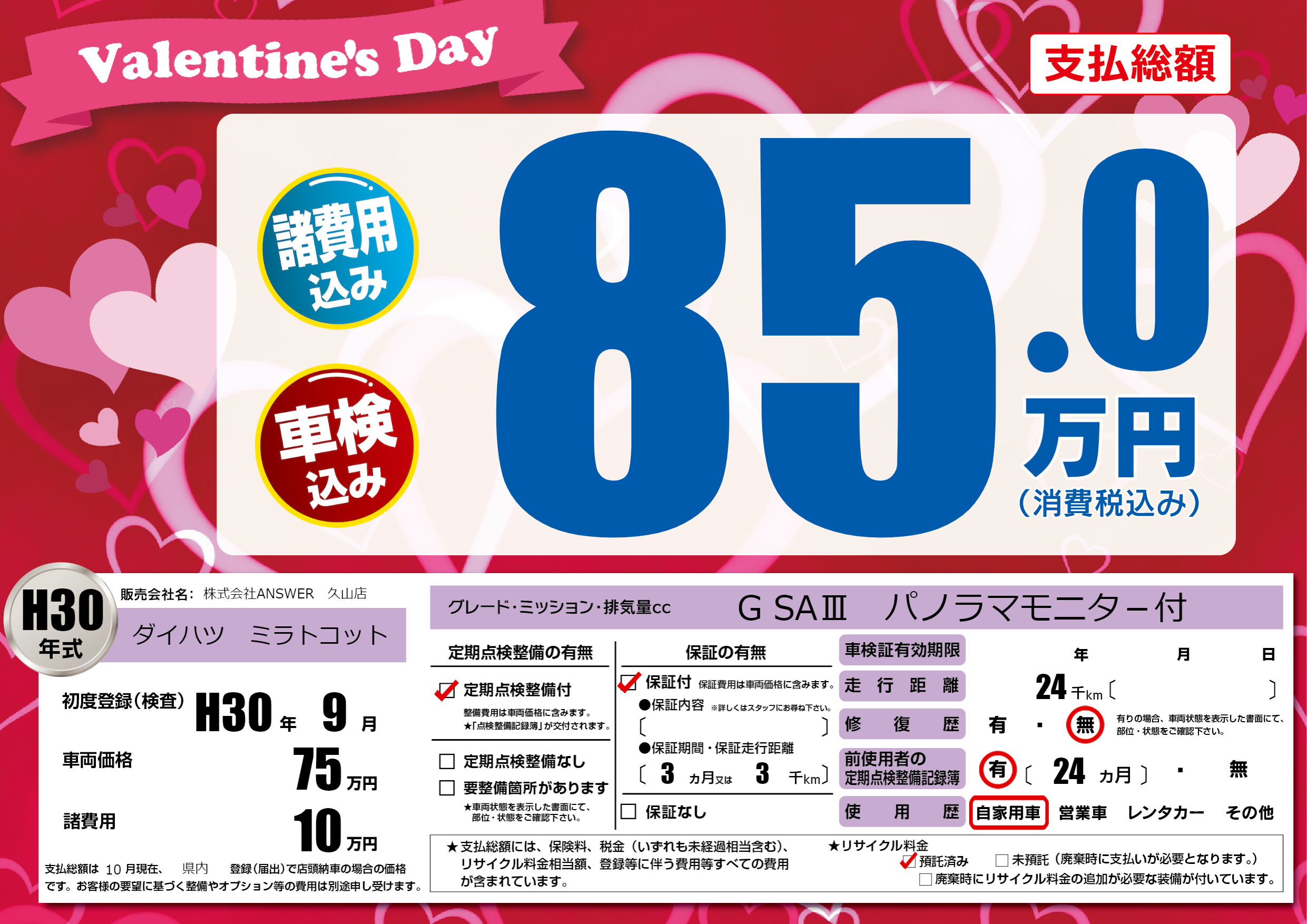 | 走行キロ | 2.4万km | 初年度登録 | H30年9月 |