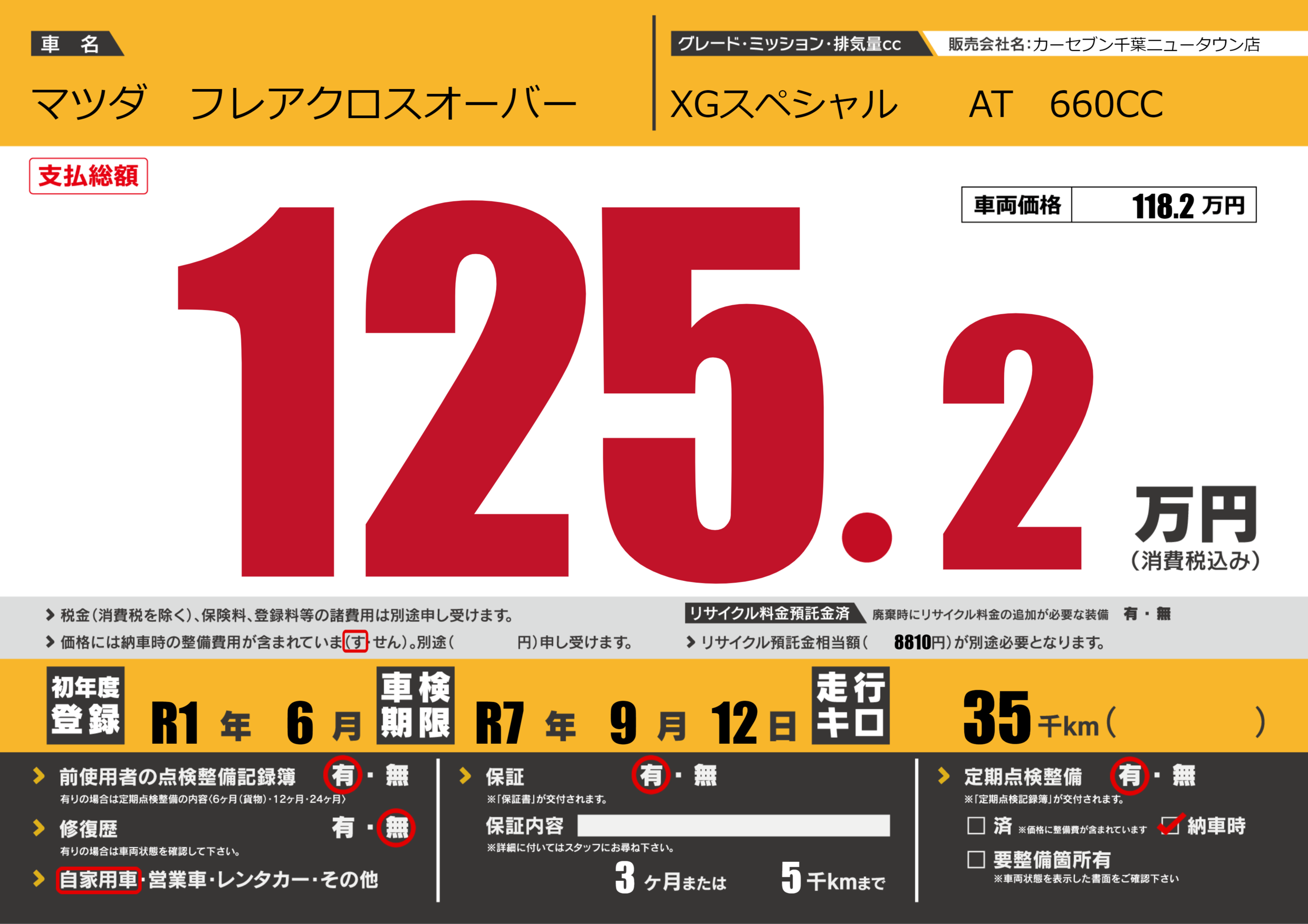 | 定期点検整備 | 定期点検整備あり 納車時あり | ||