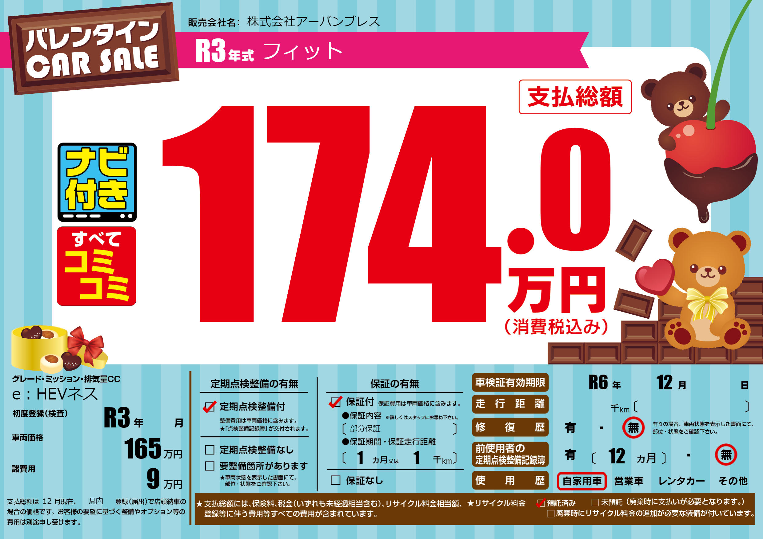保証付き 保証内容(部分保証) 1ヶ月または(1)千kmまで |