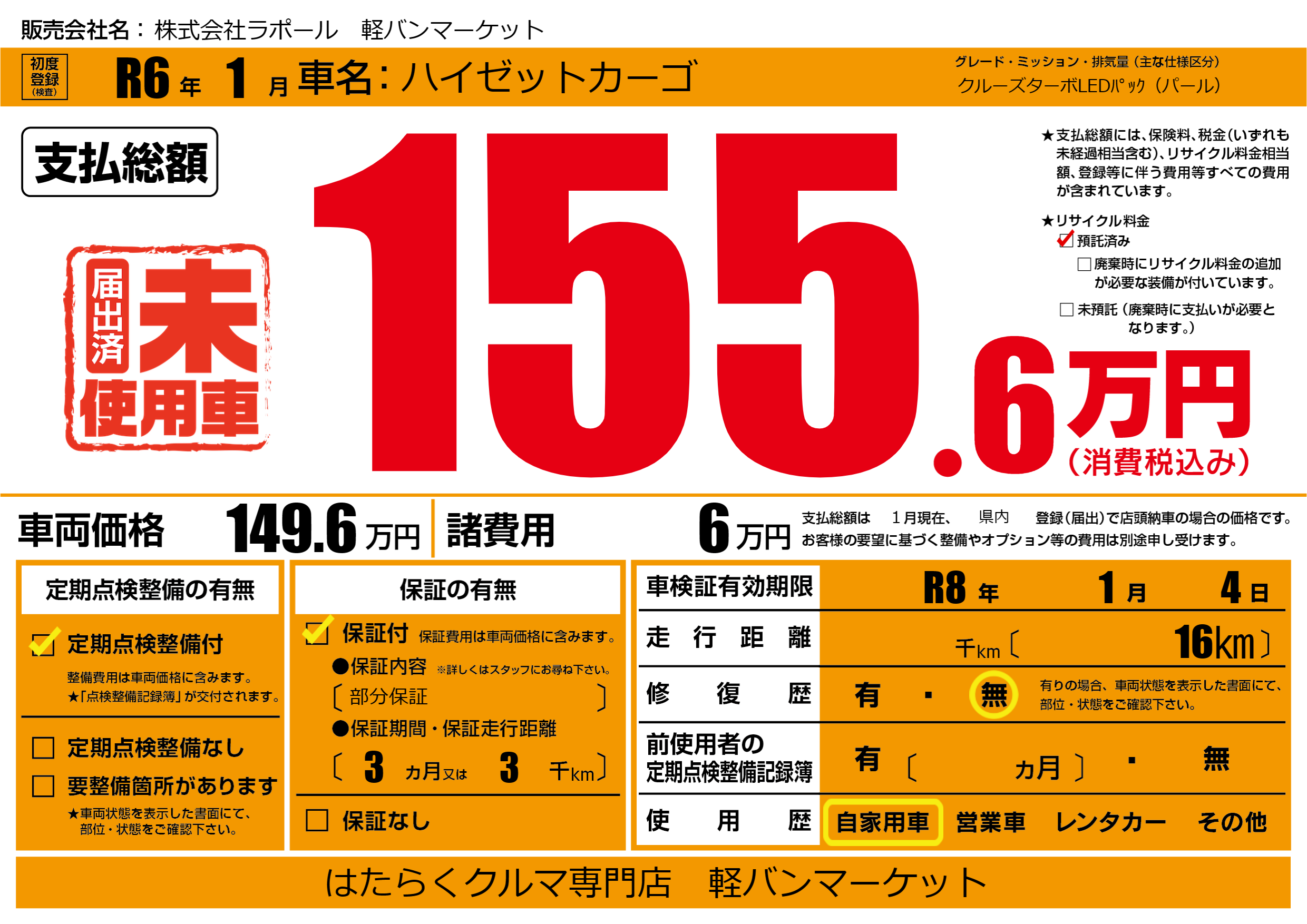 なし | 車検制限 | R8年1月4月 |