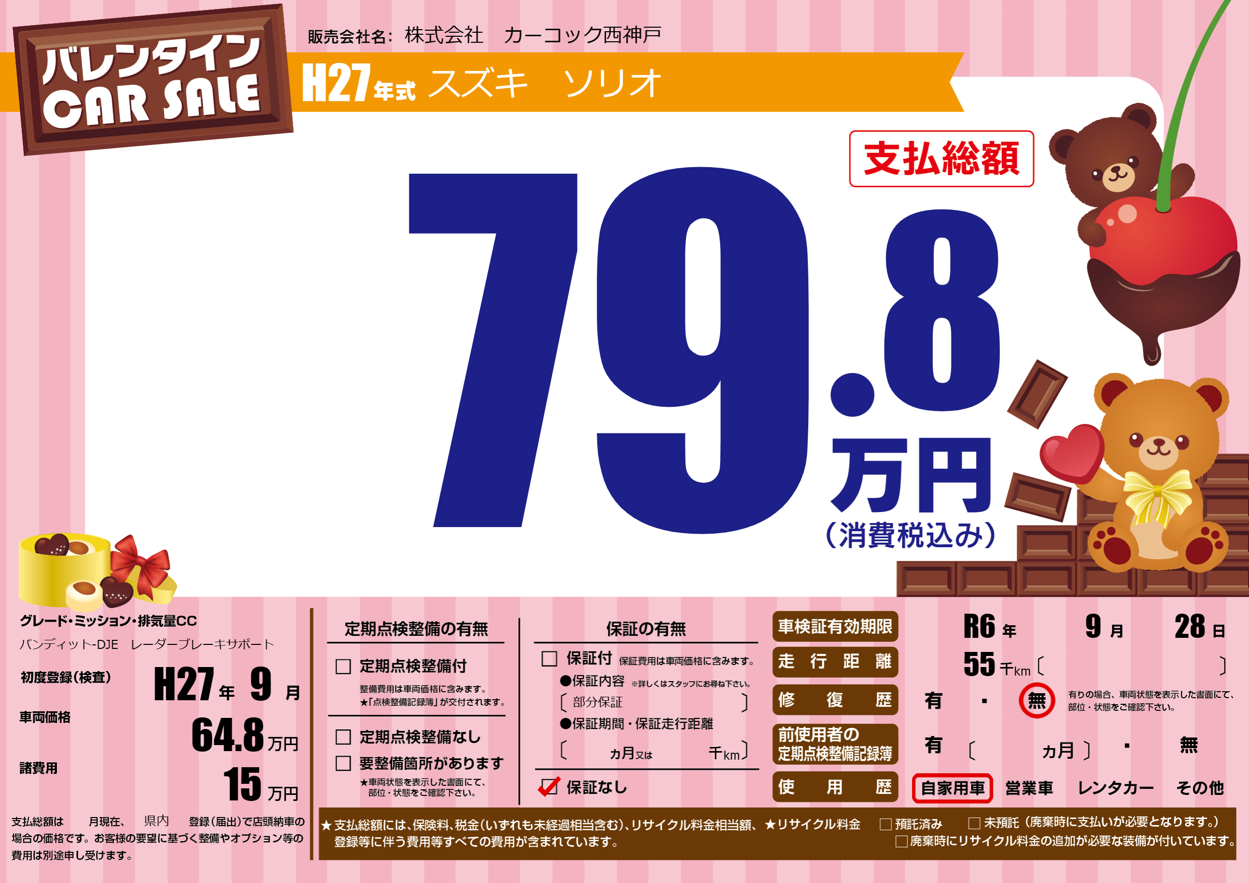 | 車名 | スズキ ソリオ | グレード ミッション 排気量 |