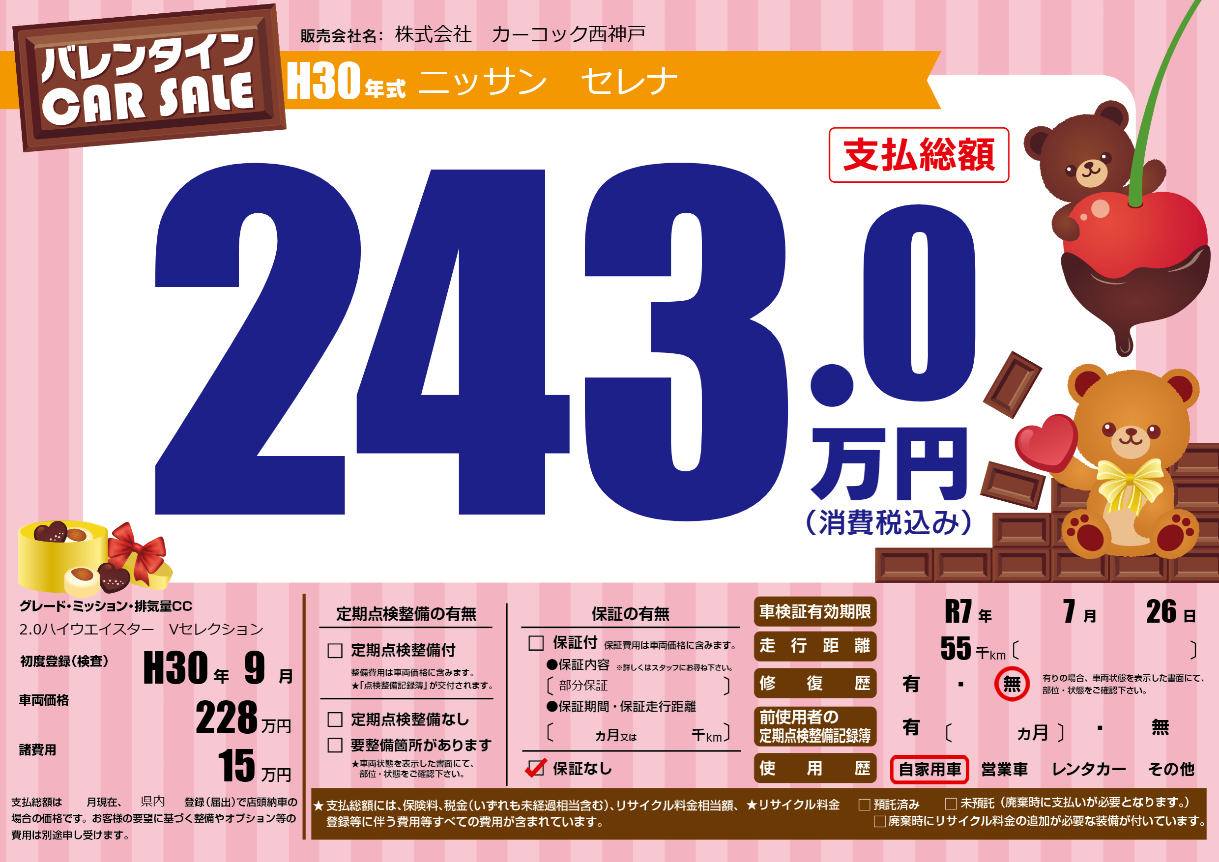 | 走行キロ | 5.5万km | 初年度登録 | H30年9月 |