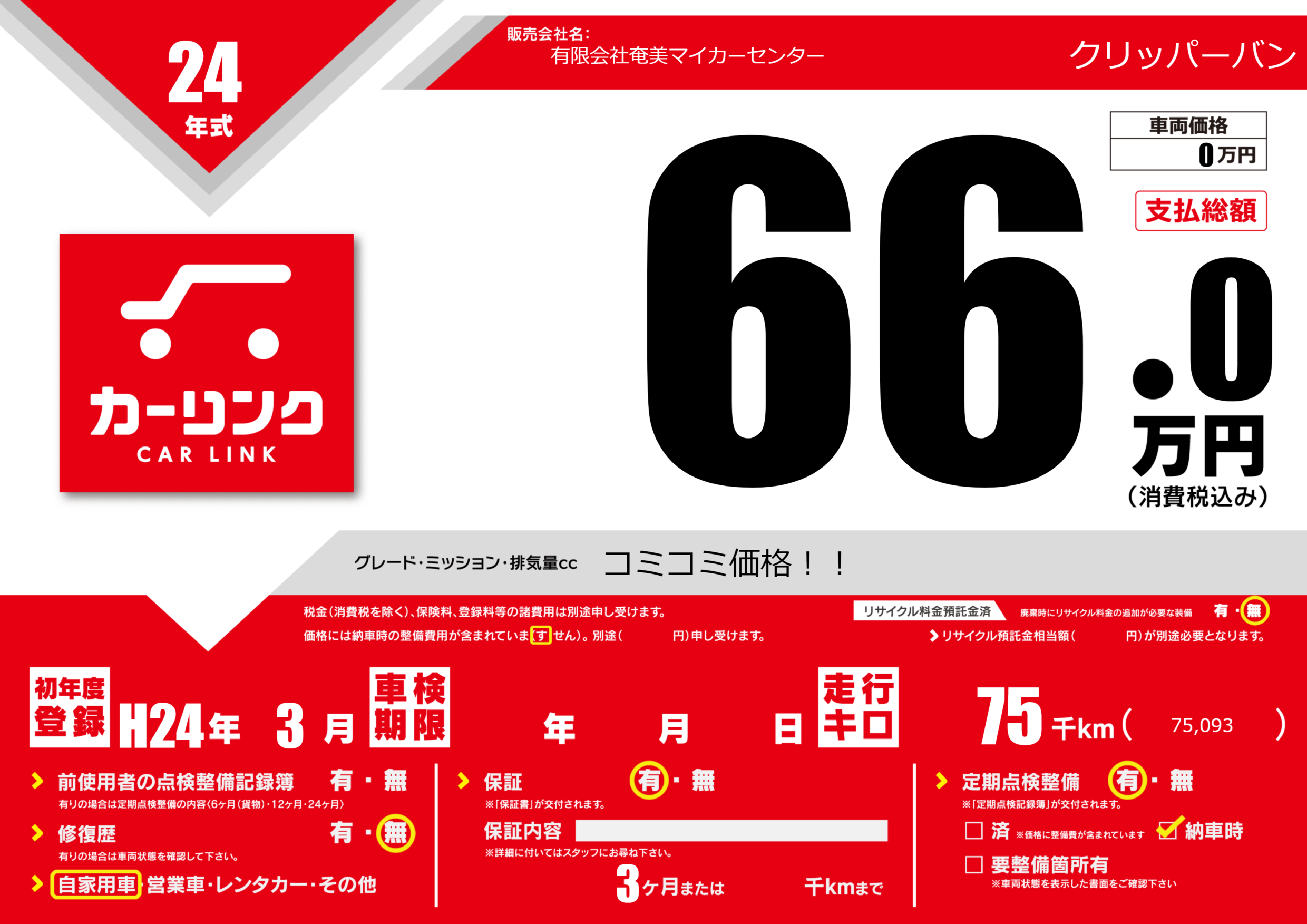 | 車名 | クリッパーバン | グレード ミッション 排気量 |