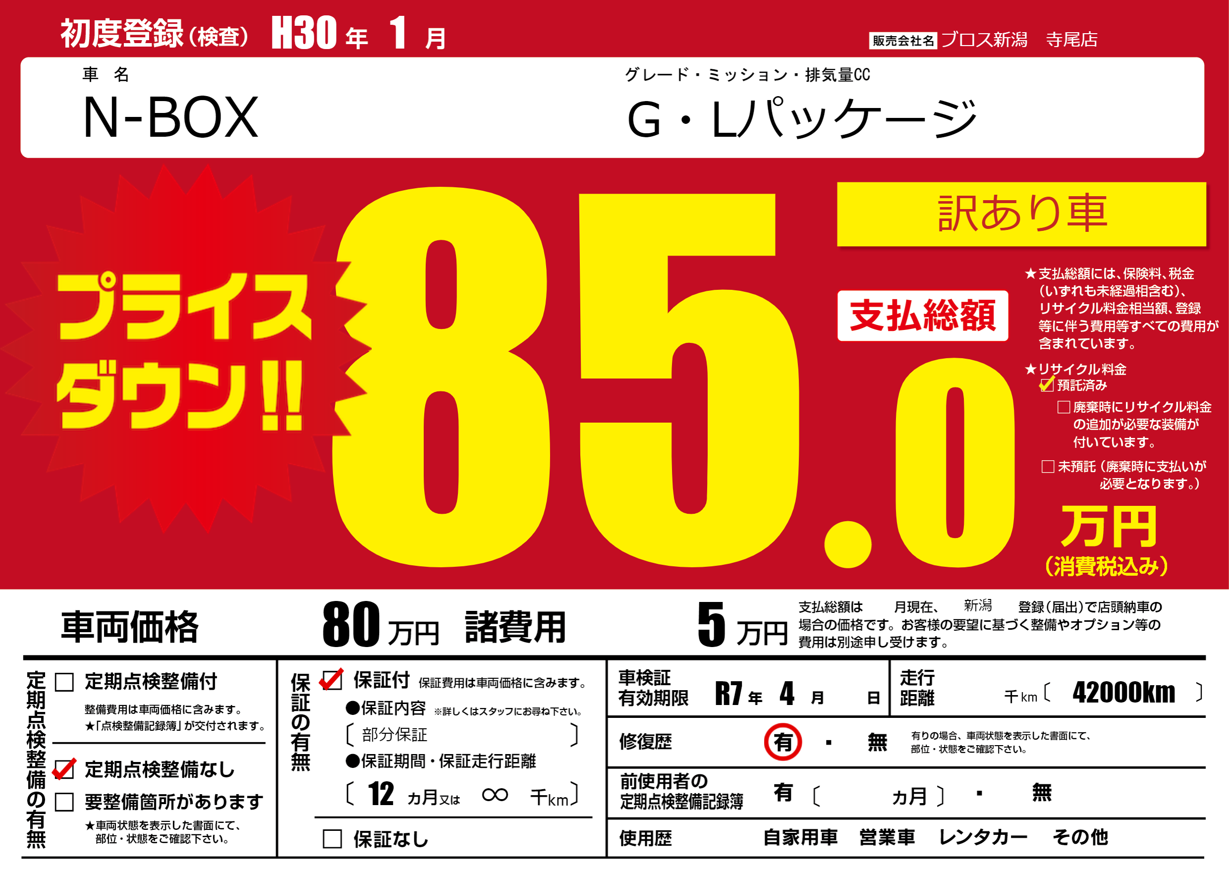 | 走行キロ | - | 初年度登録 | H30年1月 |