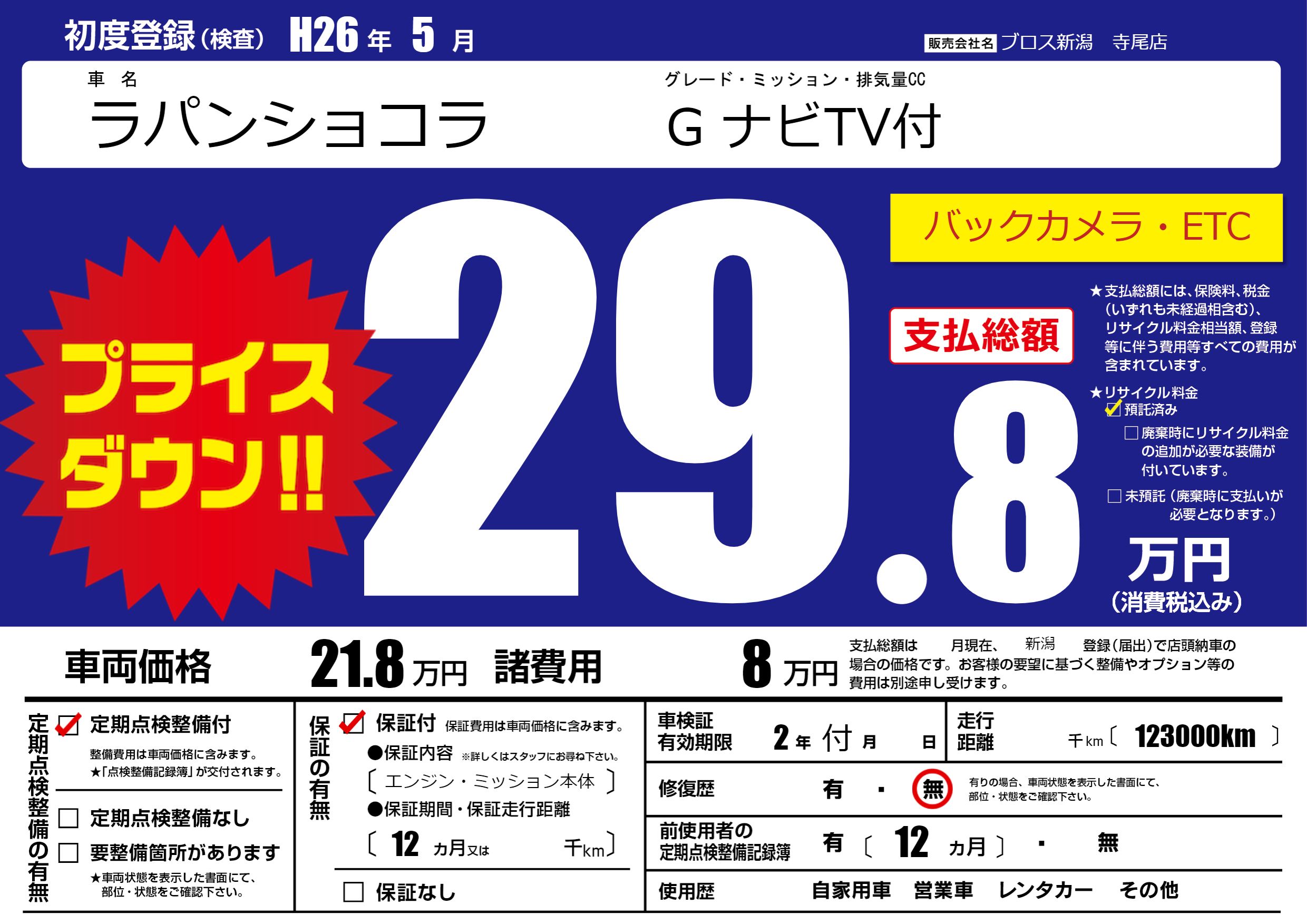 | 走行キロ | - | 初年度登録 | H26年5月 |
