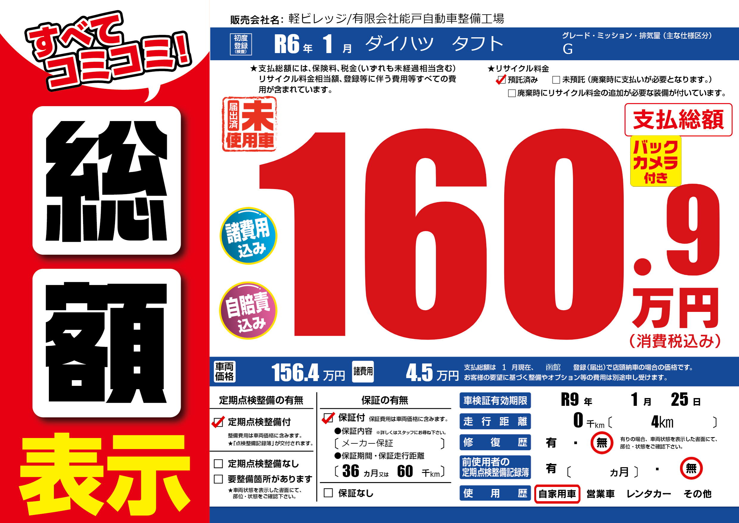 なし | 車検制限 | R9年1月25月 |
