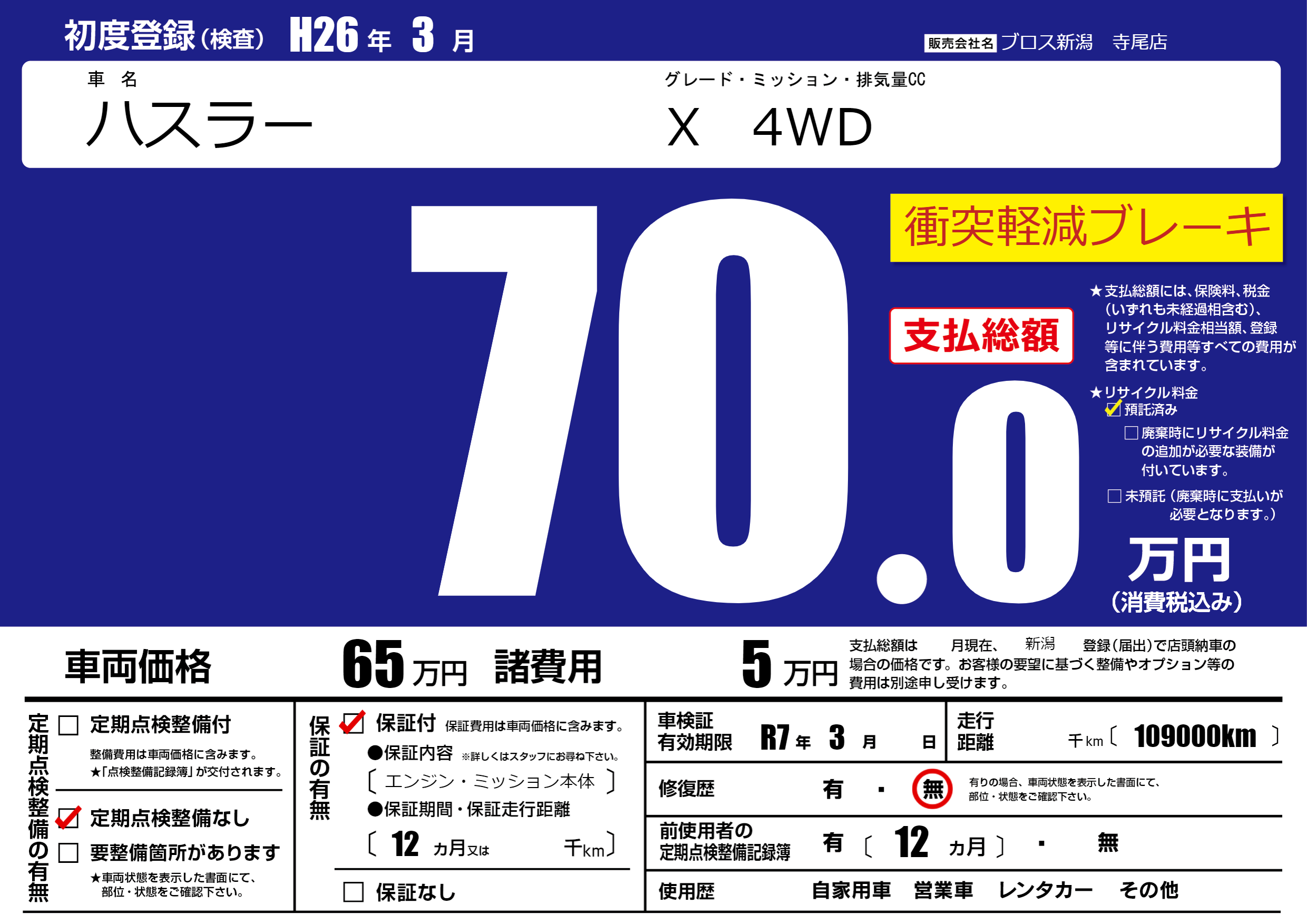 保証内容(エンジン・ミッション本体) 12ヶ月または千km