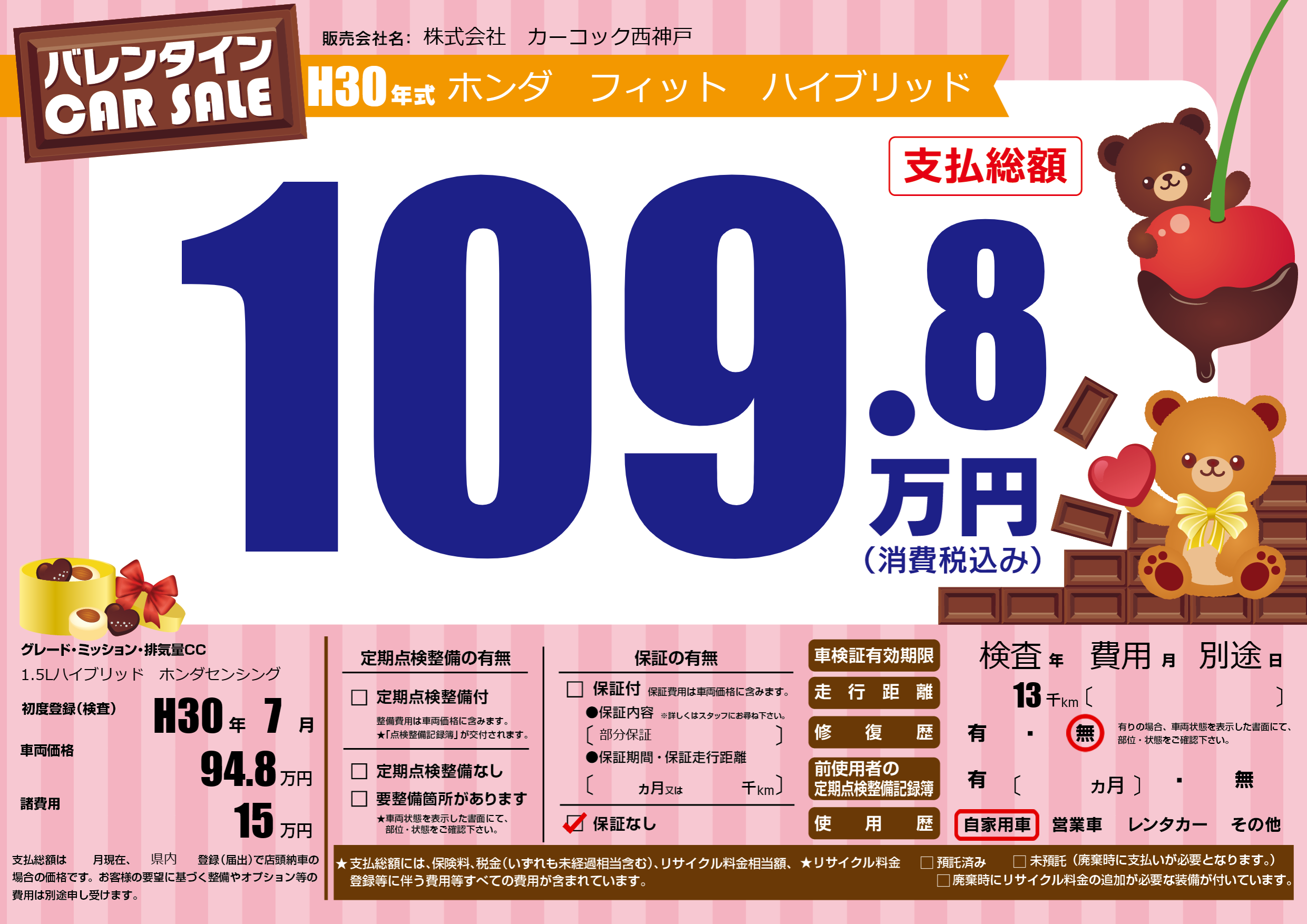 | 車名 | ホンダ フィット ハイブリッド | グレード ミッション 排気量 |
