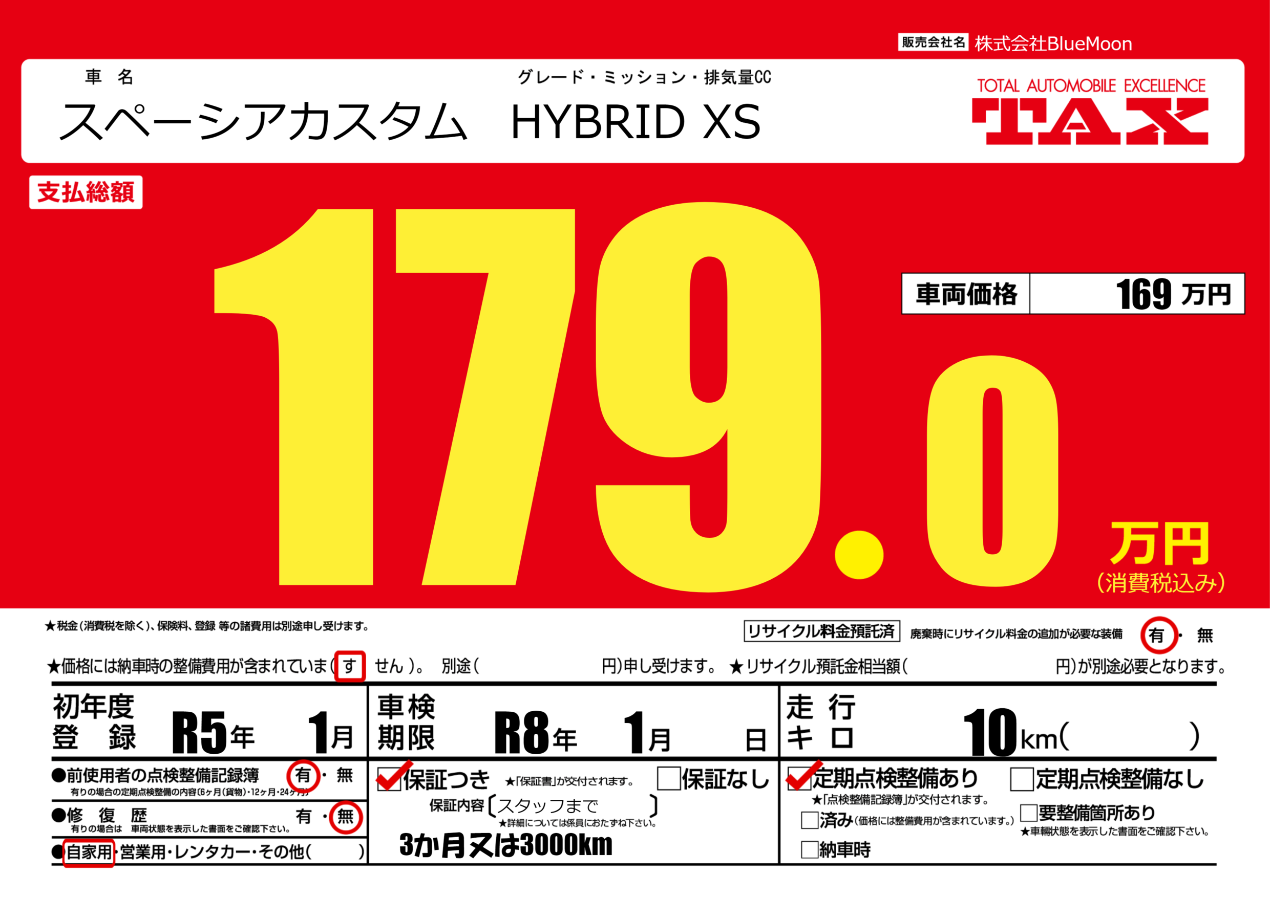 | 車名 | スペーシアカスタム | グレード ミッション 排気量 |