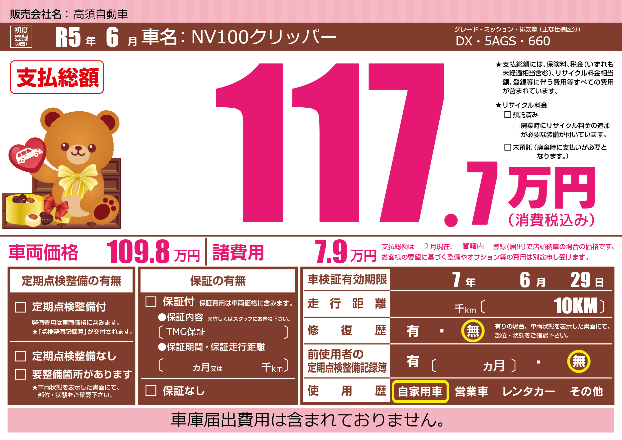 | 走行キロ | - | 初年度登録 | R5年6月 |