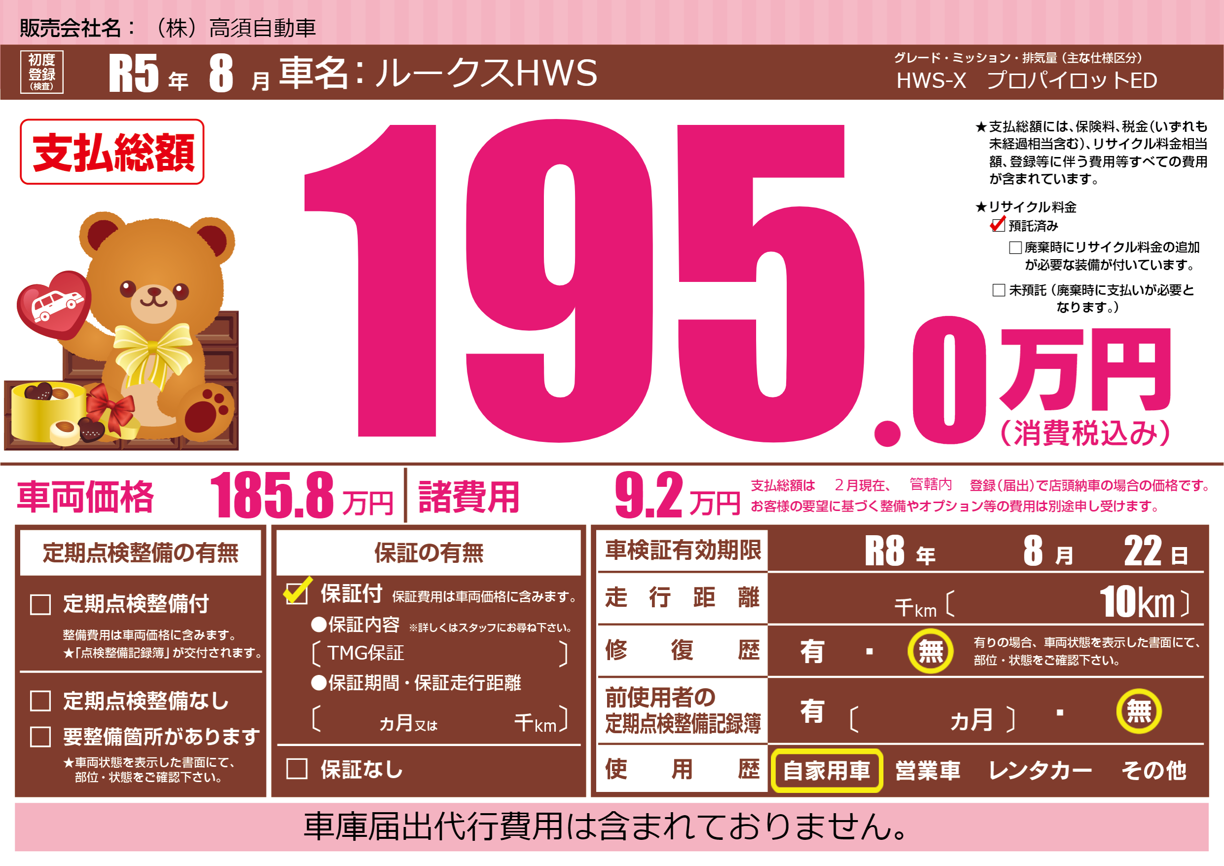 保証付き 保証内容(TMG保証) ---ヶ月または()千kmまで |