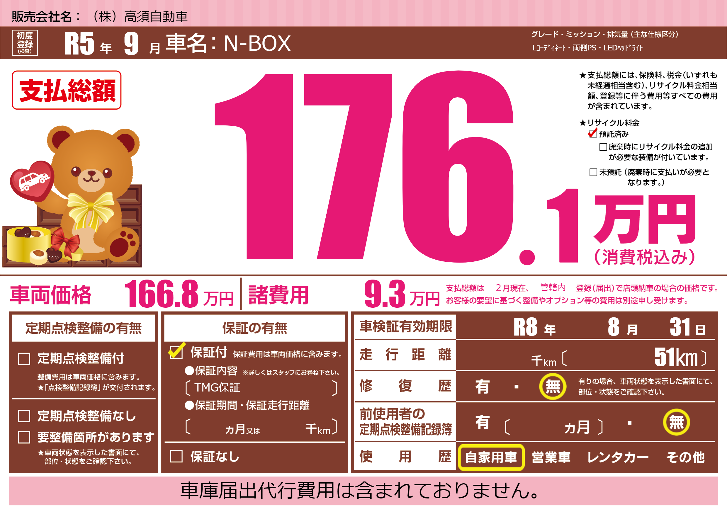 保証付き 保証内容(TMG保証) ---ヶ月または()千kmまで |