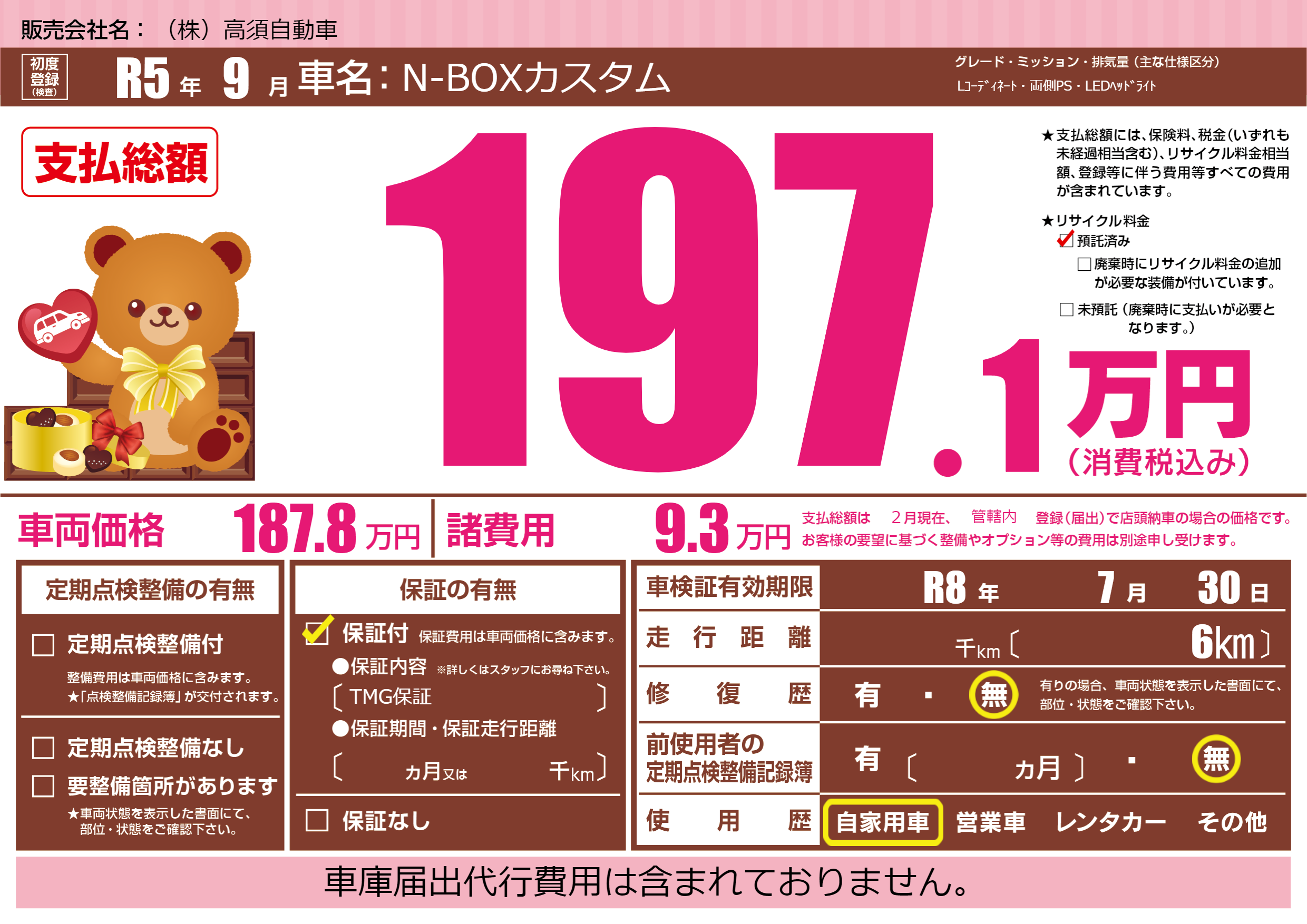 保証付き 保証内容(TMG保証) ---ヶ月または()千kmまで |
