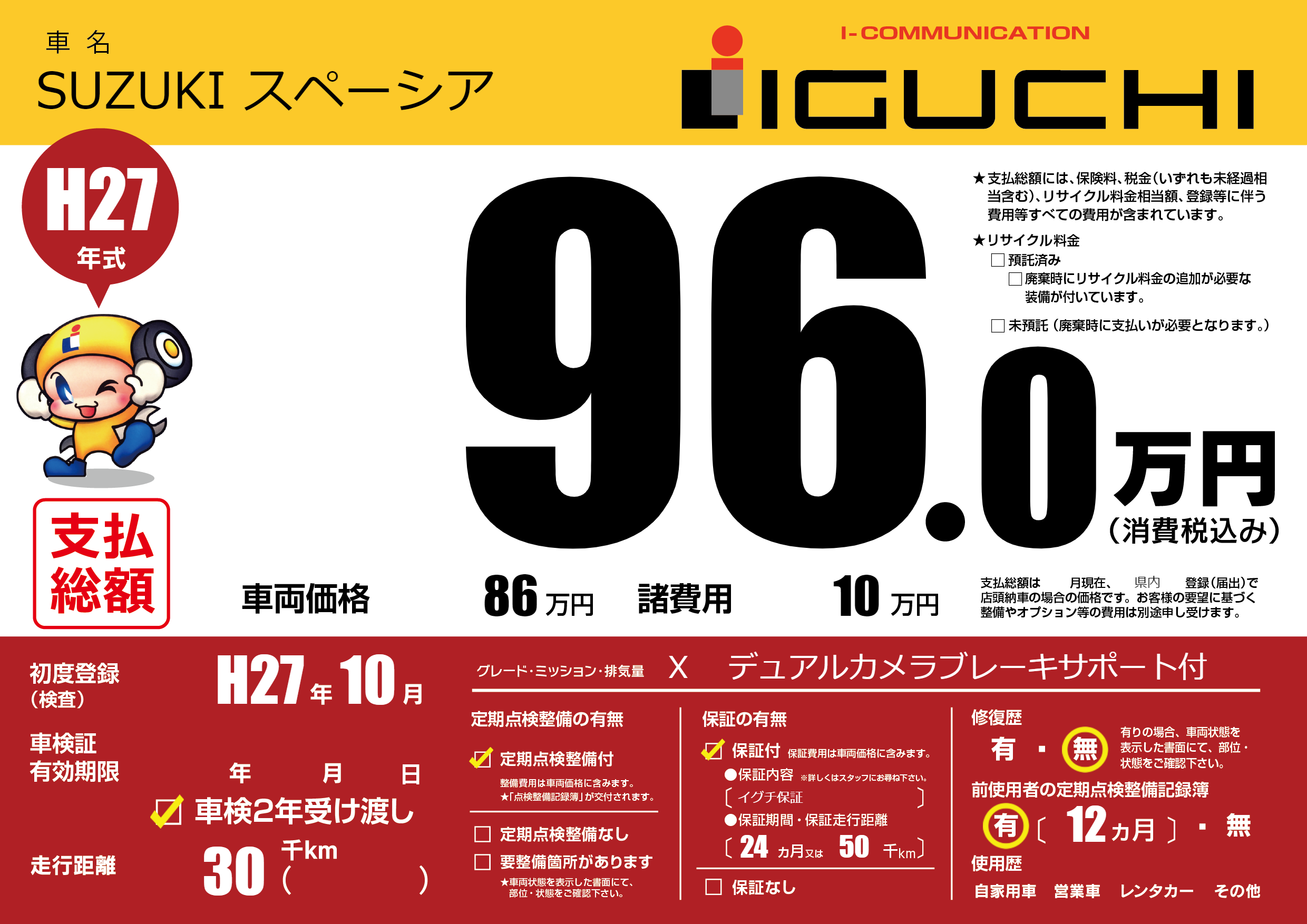 保証付き 保証内容(イグチ保証) 24ヶ月または(50)千kmまで |