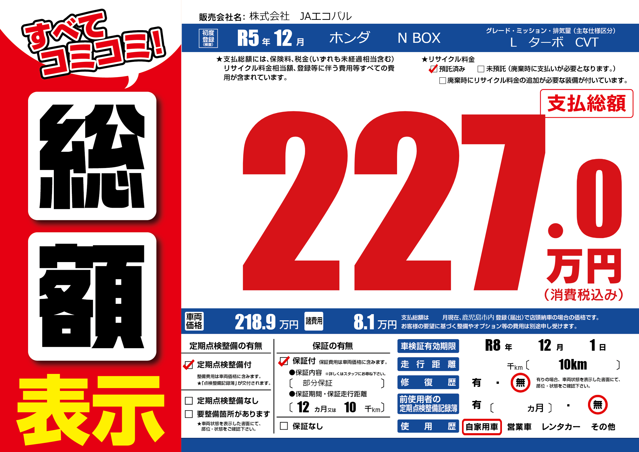 | 走行キロ | - | 初年度登録 | R5年12月 |