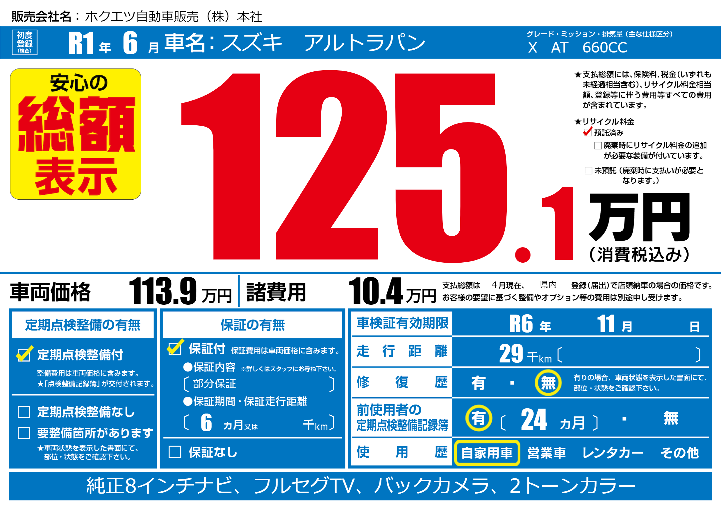 | 走行キロ | 2.9万km | 初年度登録 | R1年6月 |