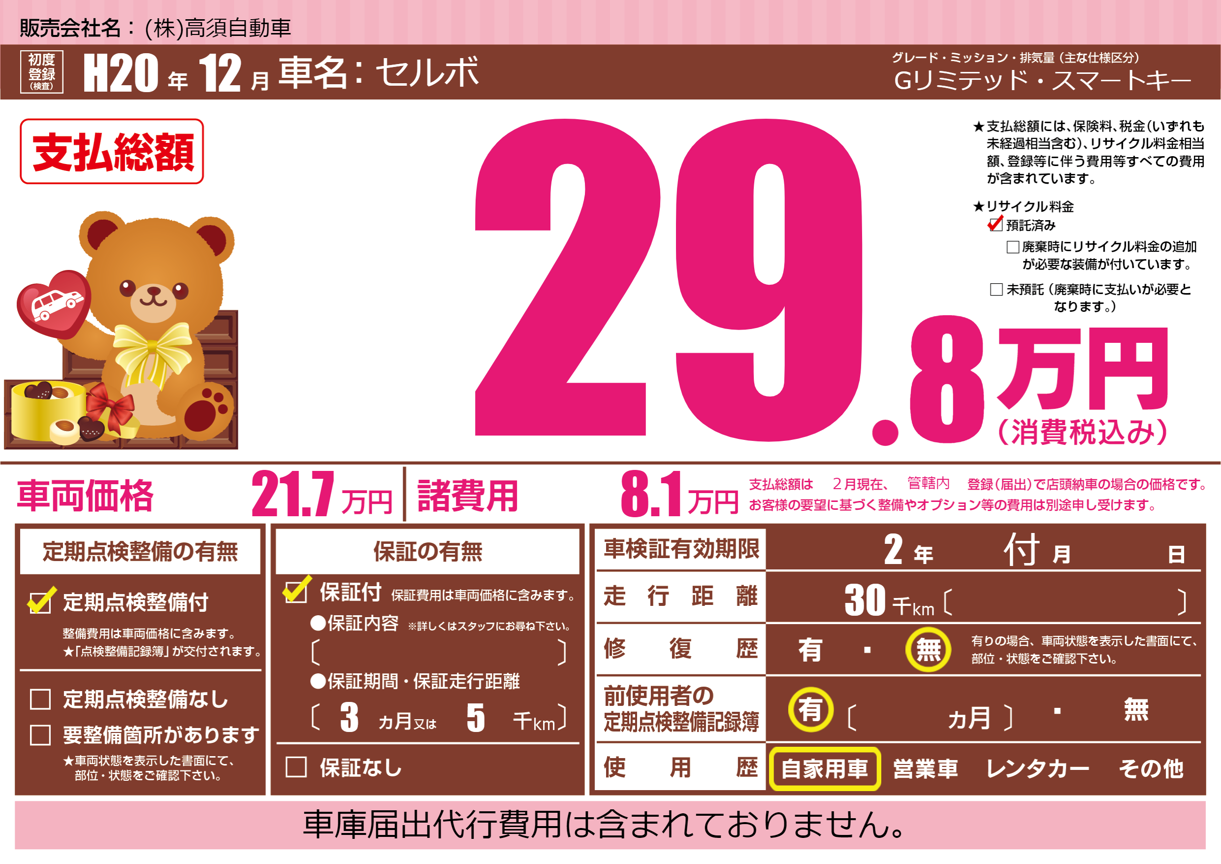 | 走行キロ | 3万km | ||