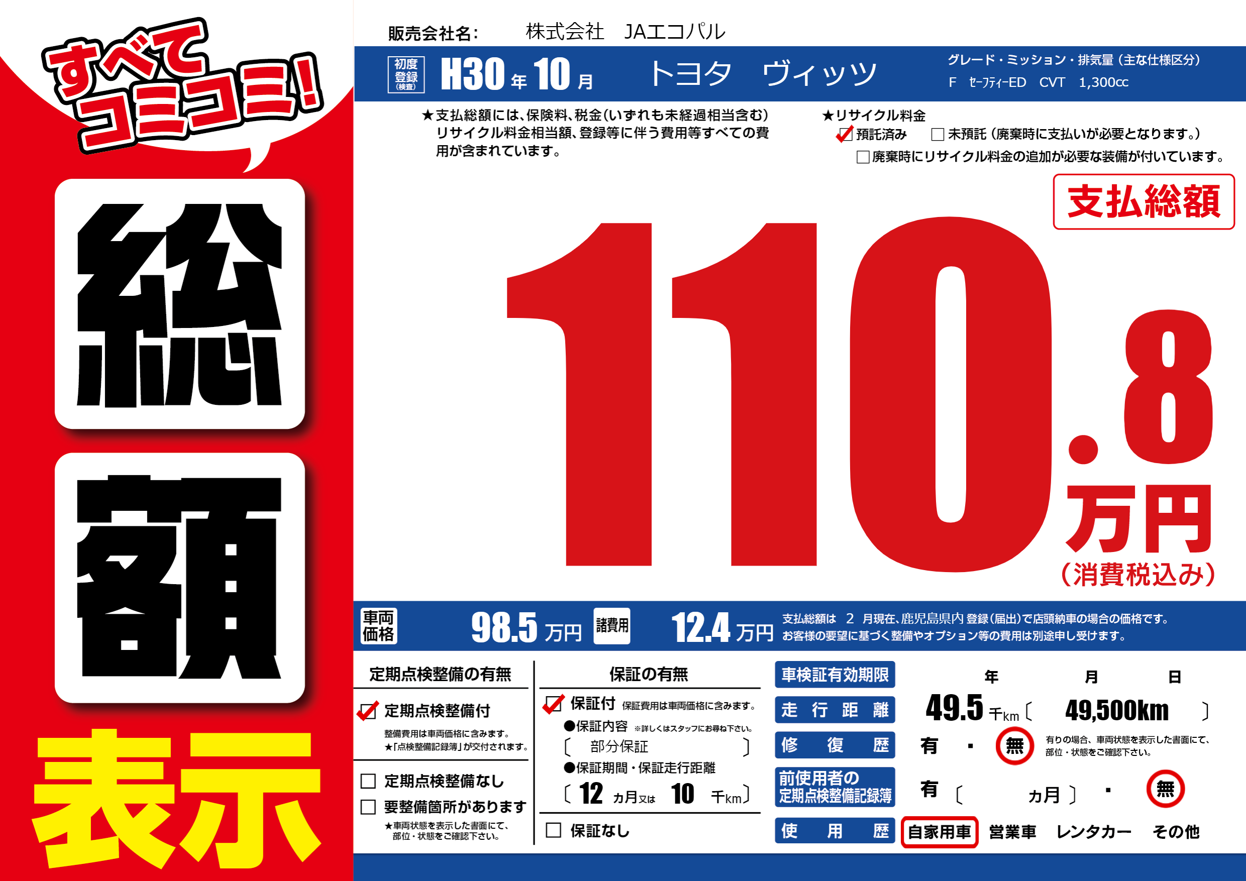 | 車名 | トヨタ ヴィッツ | グレード ミッション 排気量 |