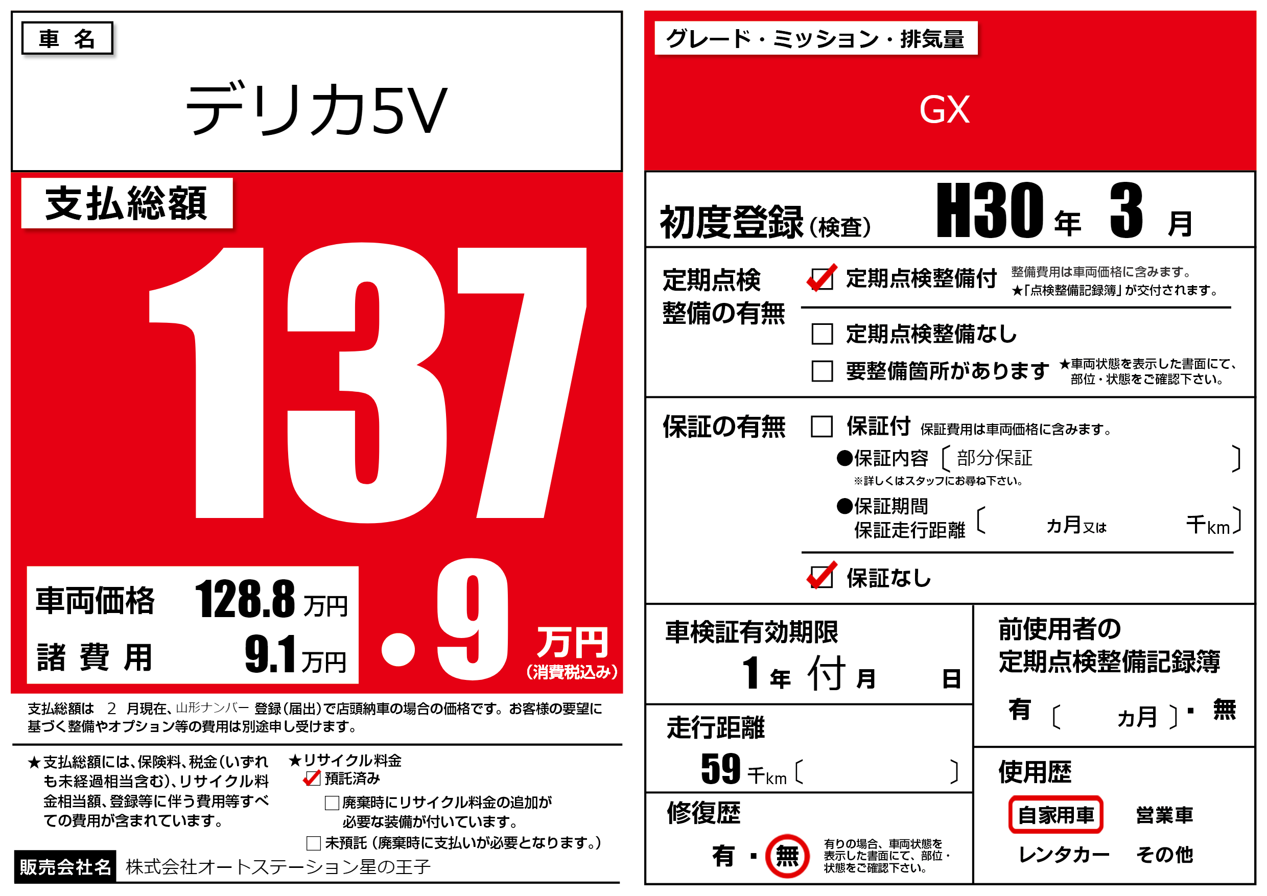 | 車名 | デリカ5V | グレード ミッション 排気量 |