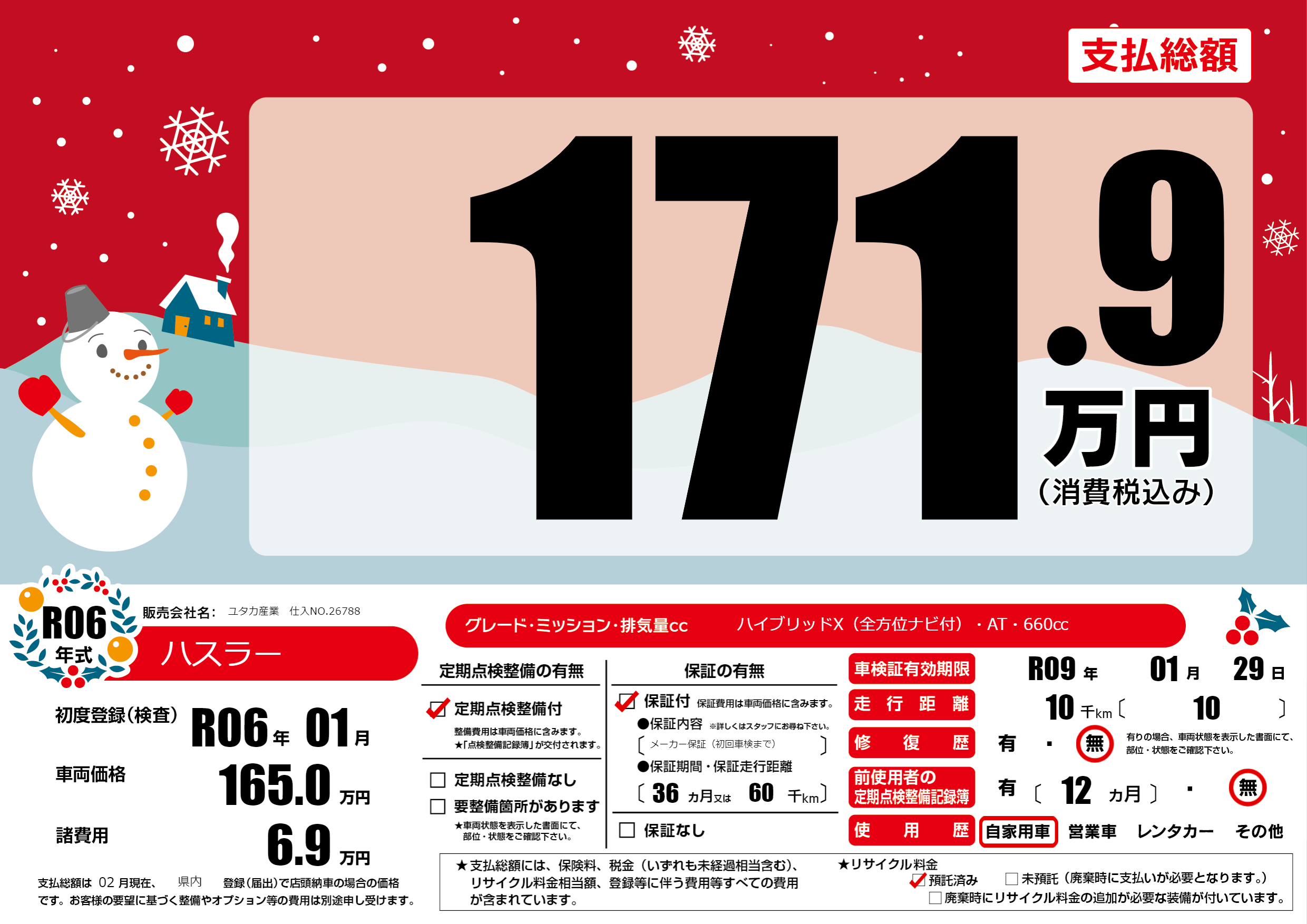 | 車名 | ハスラー | グレード ミッション 排気量 |