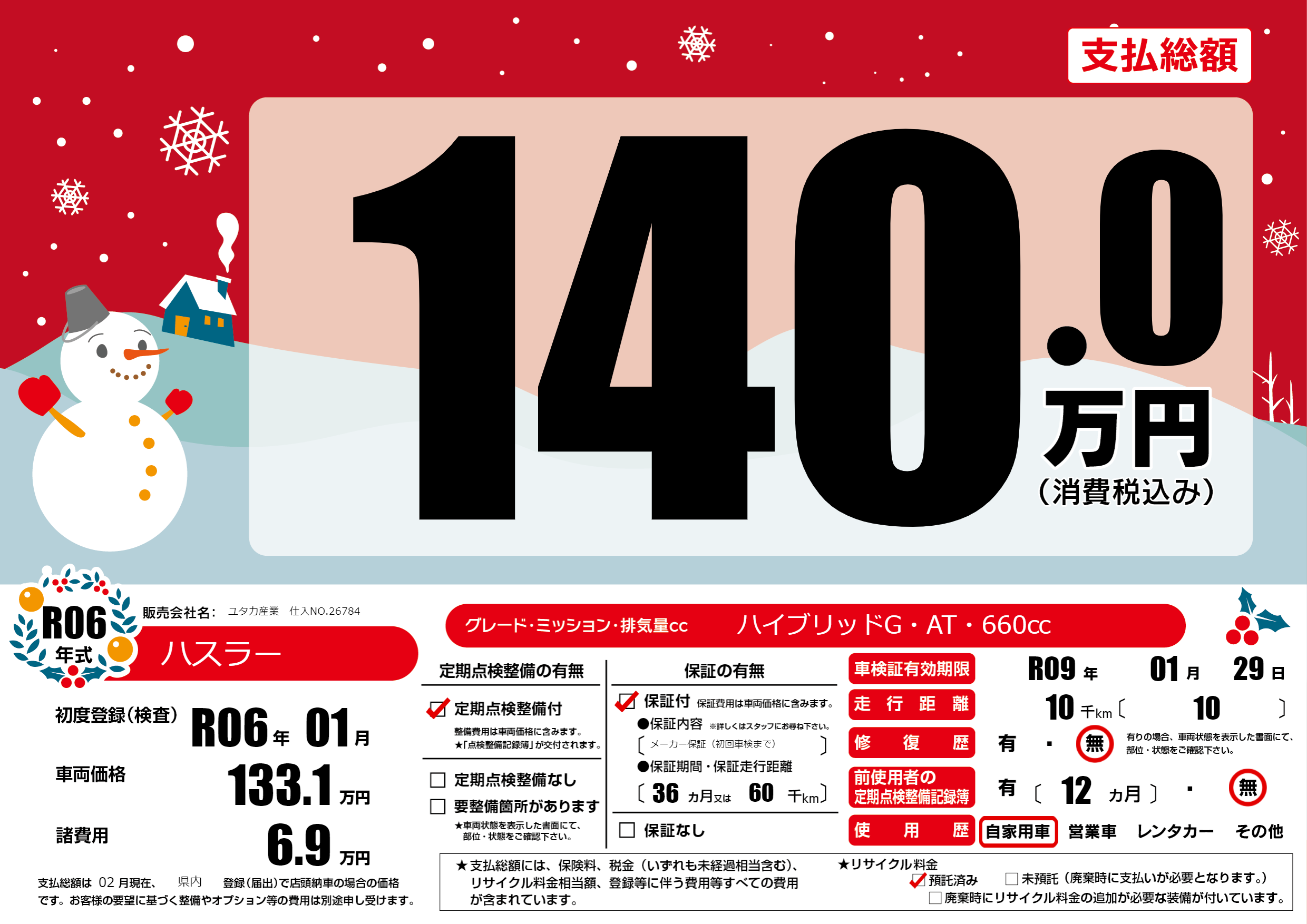 保証内容(メーカー保証(初回車検まで)) 36ヶ月または60千km