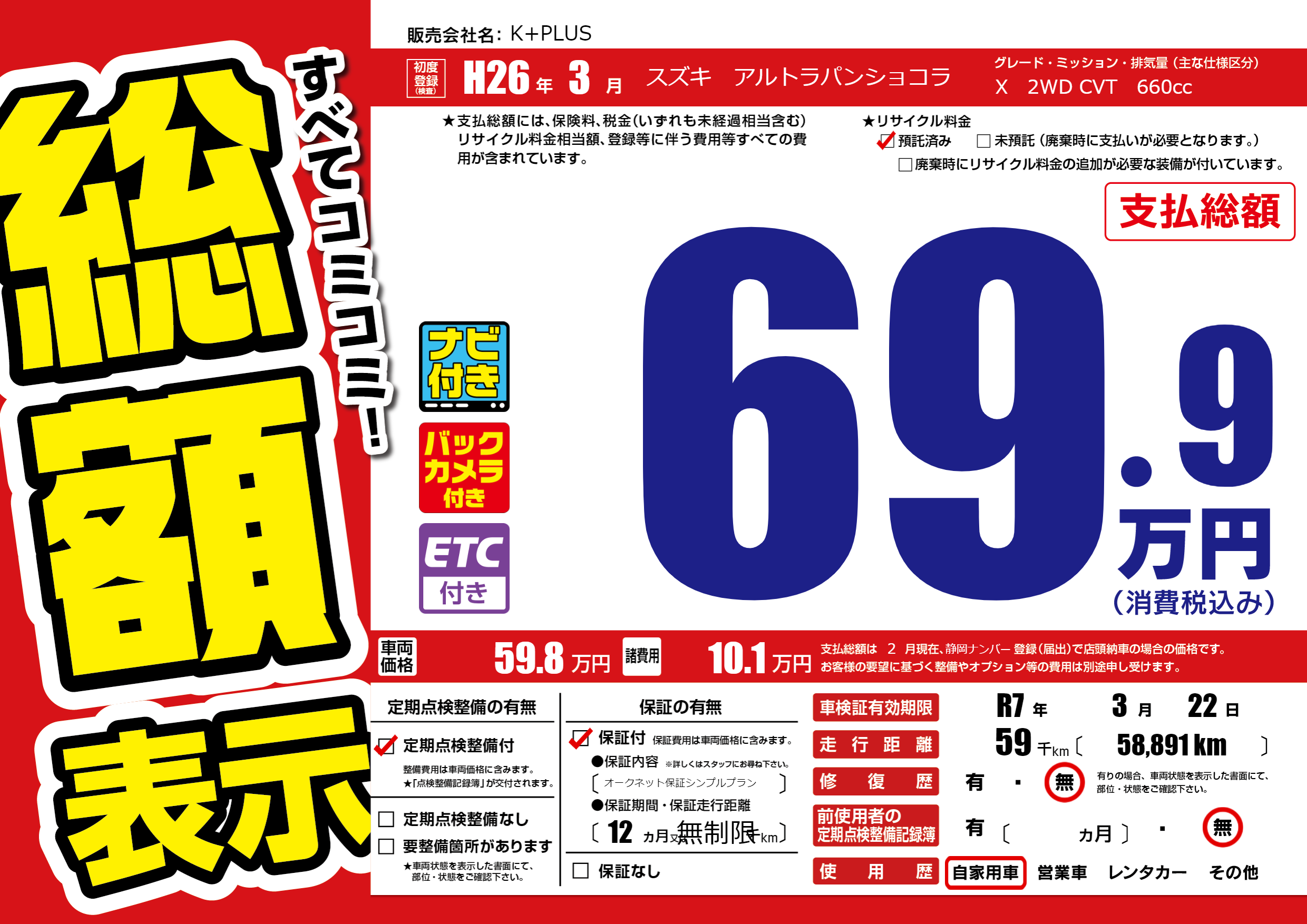 | 車検制限 | R7年 3月 22日 | ||