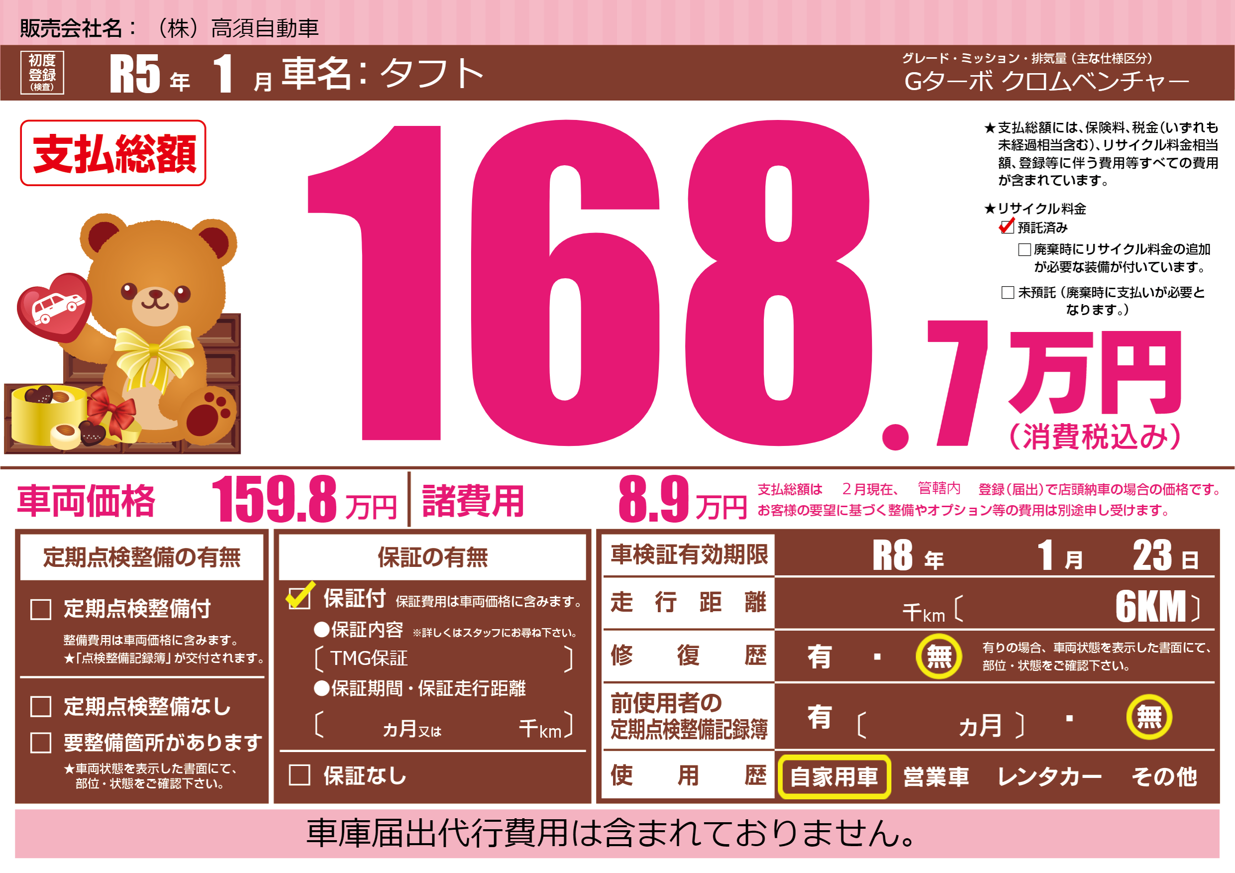 保証付き 保証内容(TMG保証) ---ヶ月または()千kmまで |