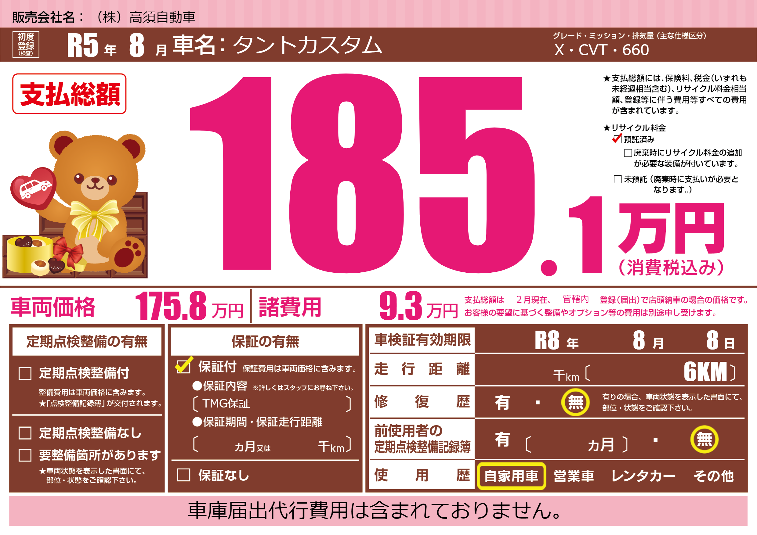 保証付き 保証内容(TMG保証) ---ヶ月または()千kmまで |