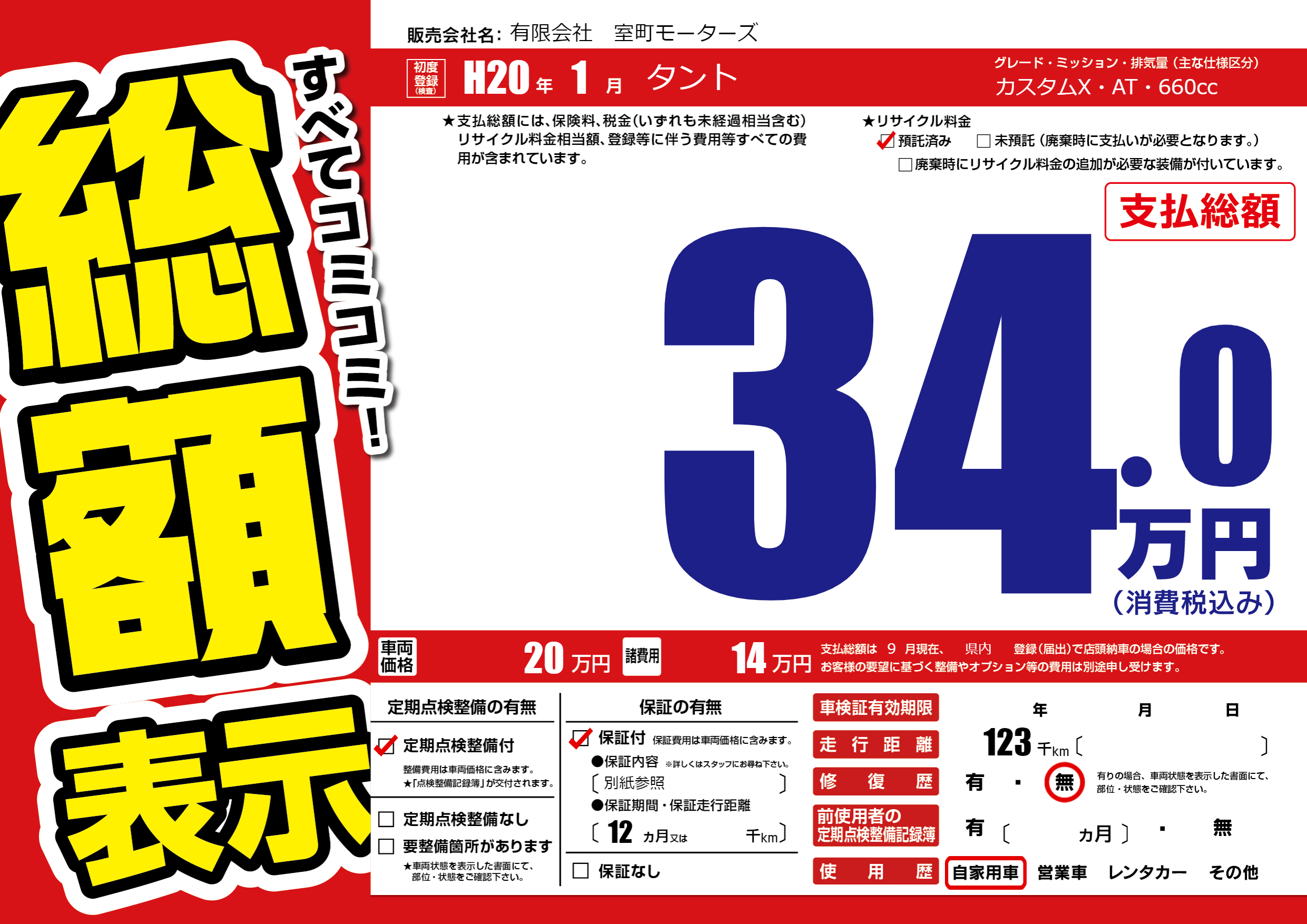 | 走行キロ | 12.3万km | 初年度登録 | H20年1月 |