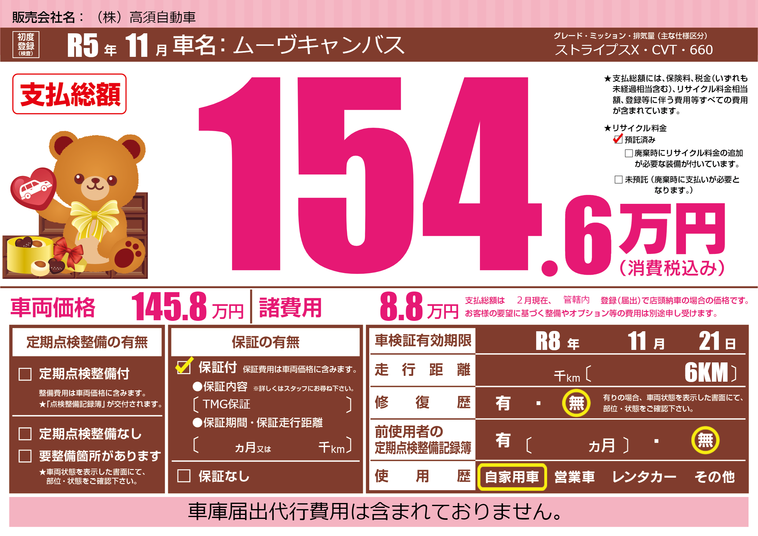 保証付き 保証内容(TMG保証) ---ヶ月または()千kmまで |