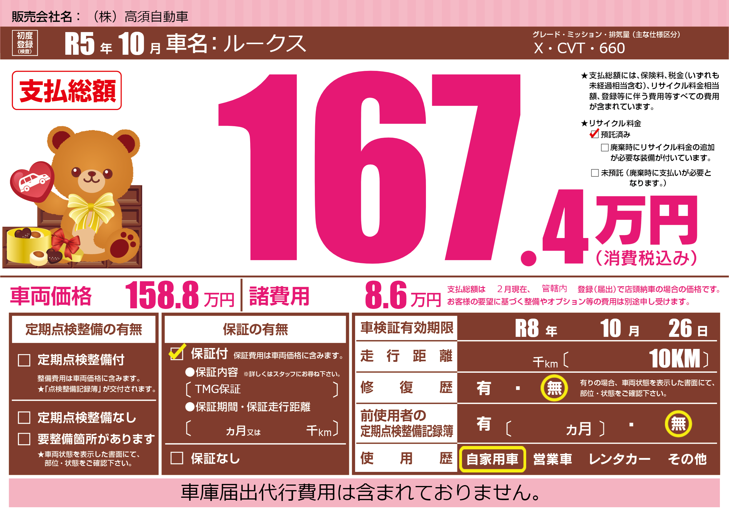 なし | 車検制限 | R8年10月26月 |