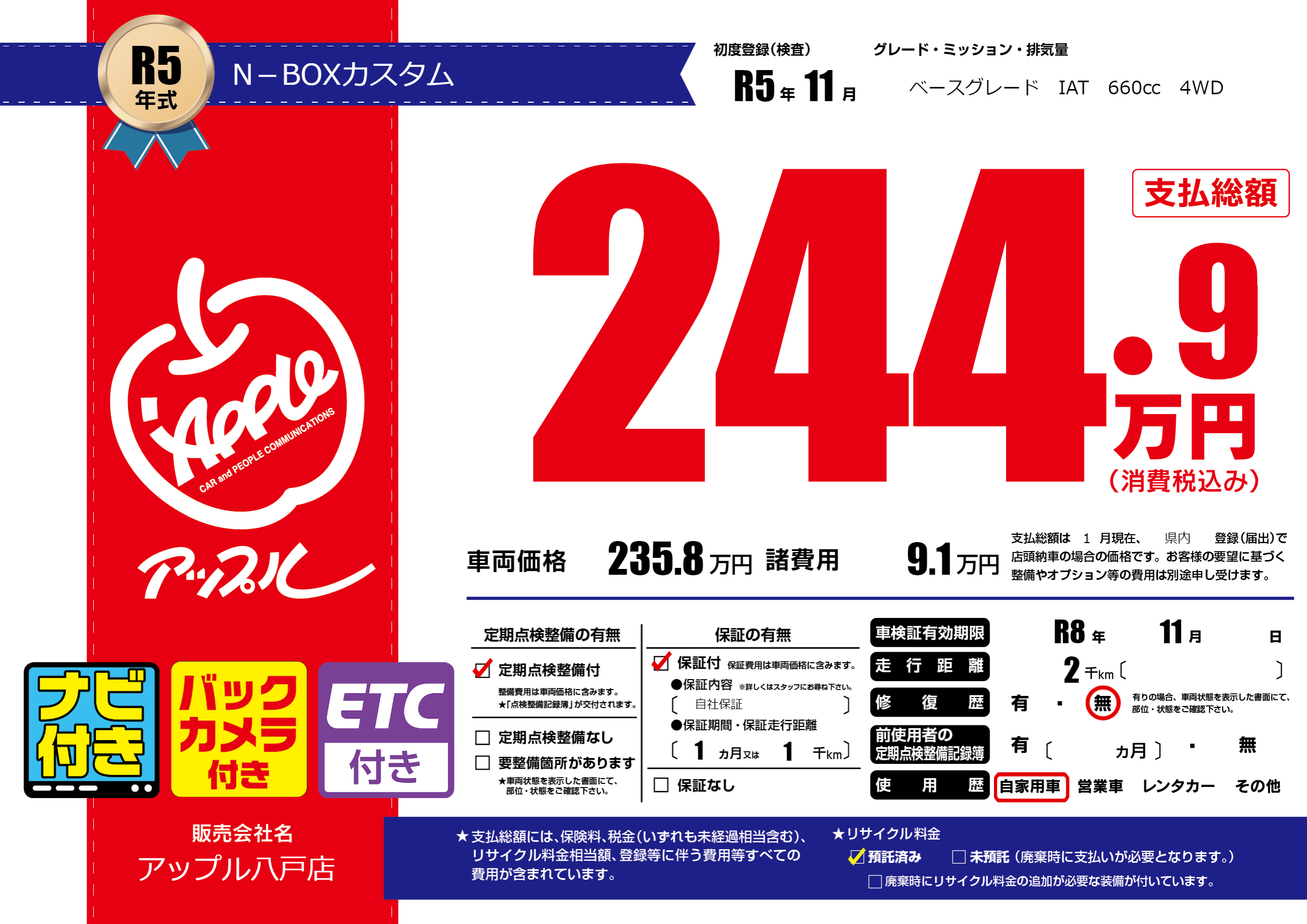 なし | 車検制限 | R8年11月---月 |
