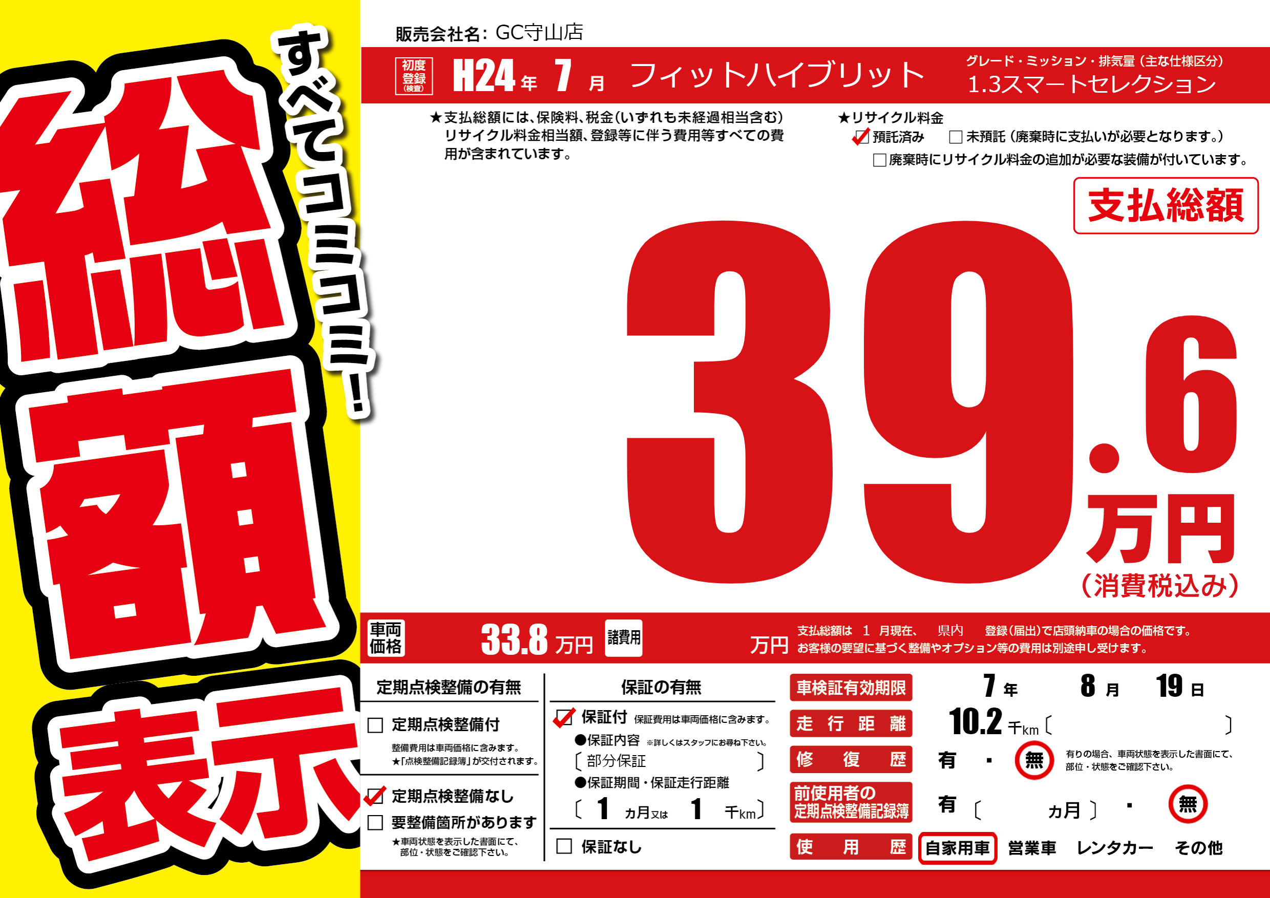 | 車検制限 | 7年 8月 19日 | ||