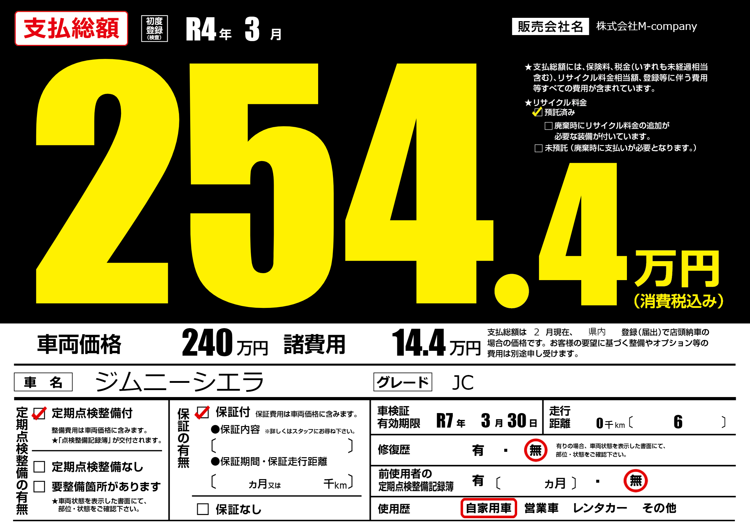 | 車検制限 | R7年 3月 30日 | ||