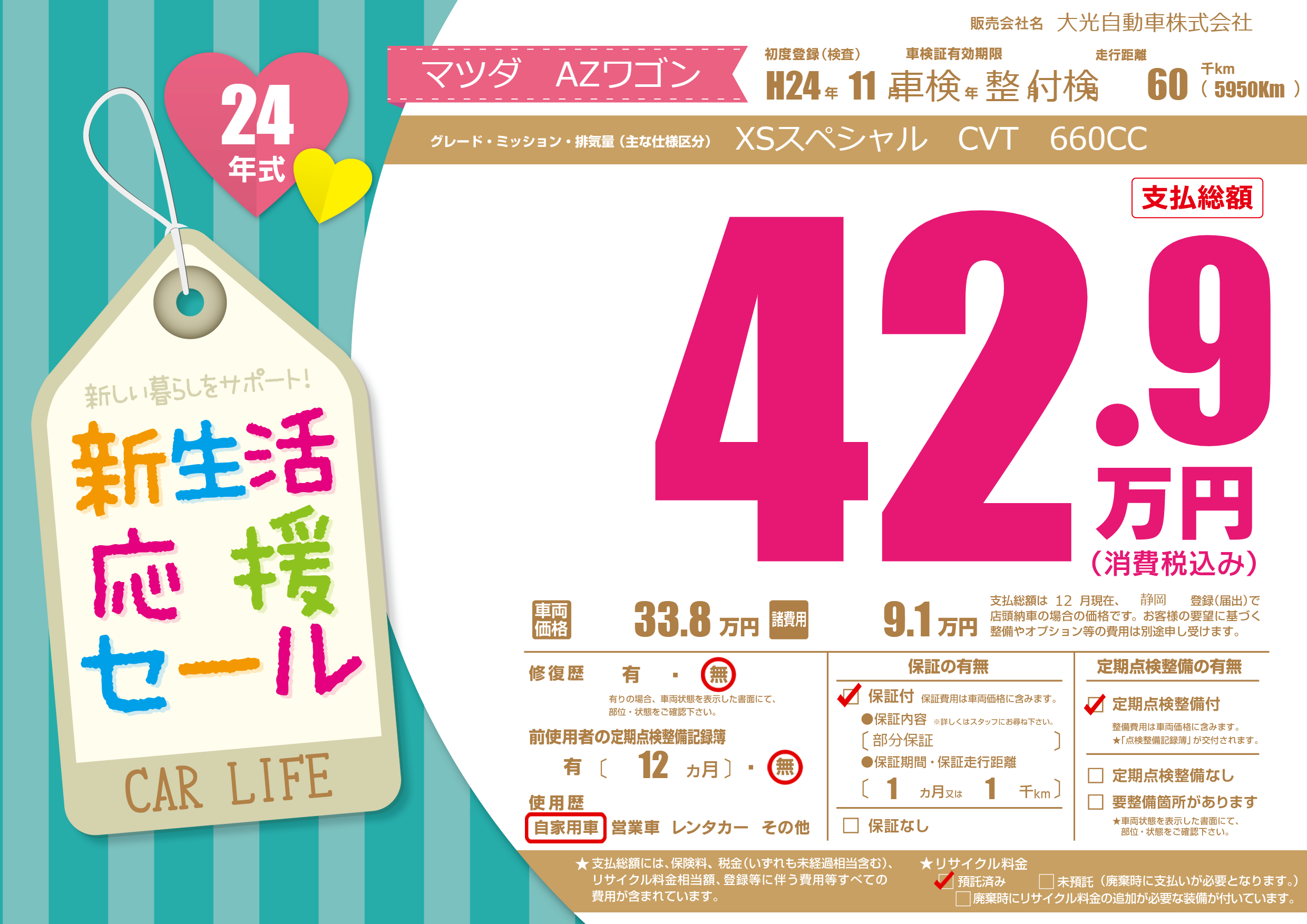 | 車名 | マツダ AZワゴン | グレード ミッション 排気量 |