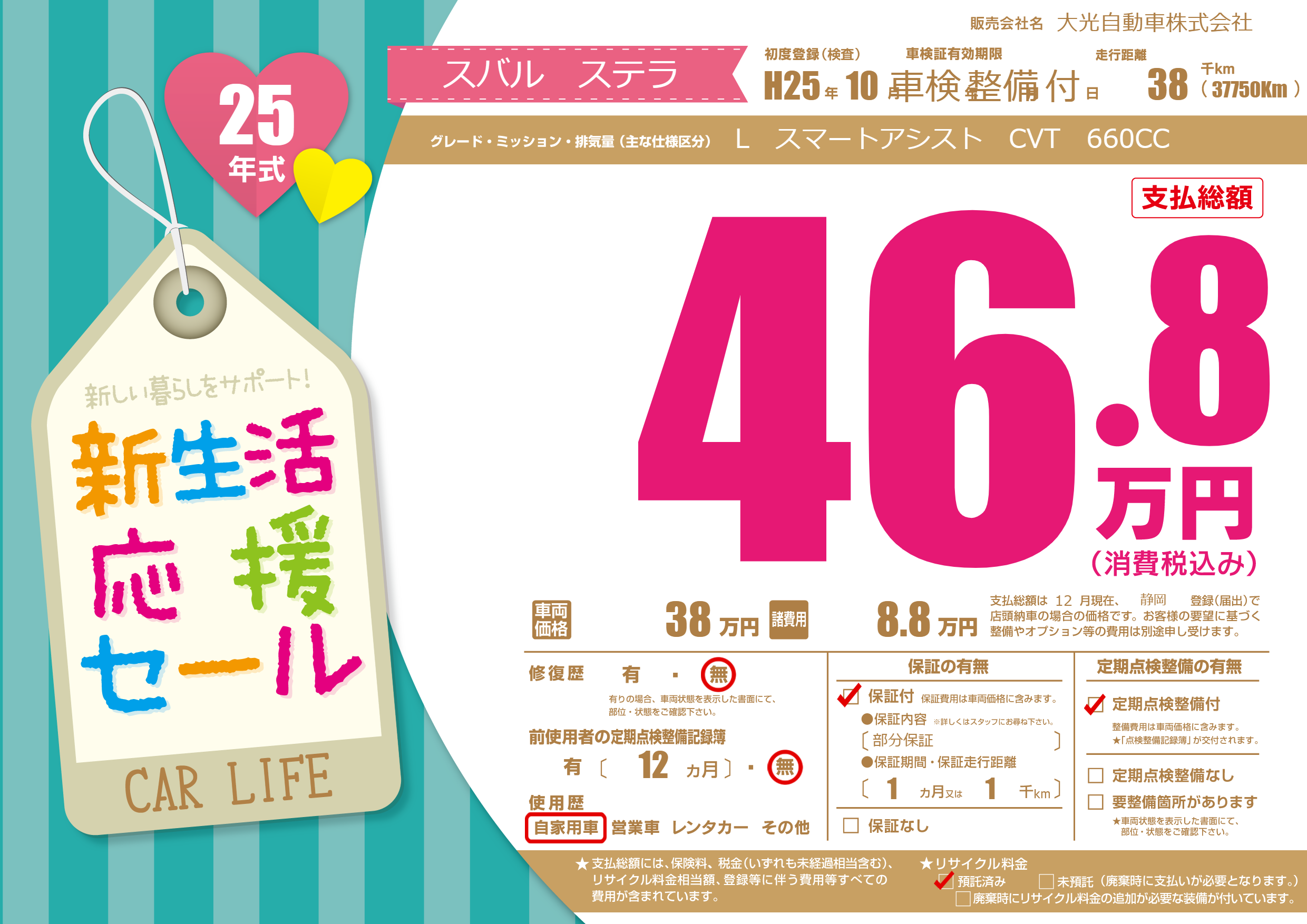| 車名 | スバル ステラ | グレード ミッション 排気量 |