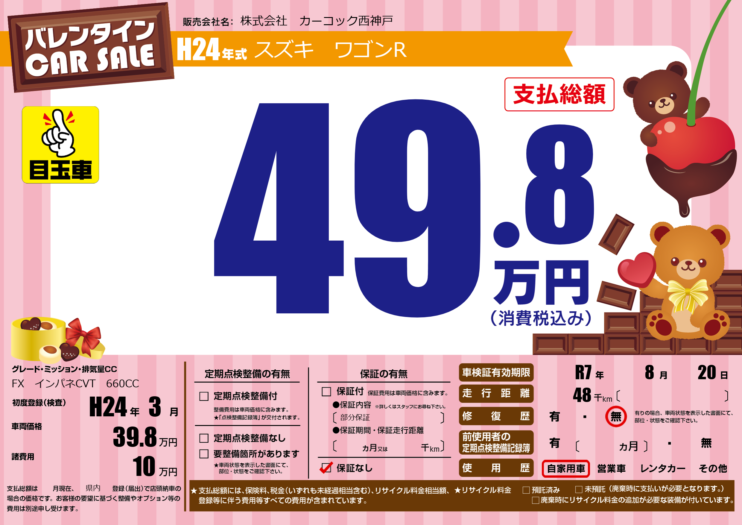 | 走行キロ | 4.8万km | 初年度登録 | H24年3月 |