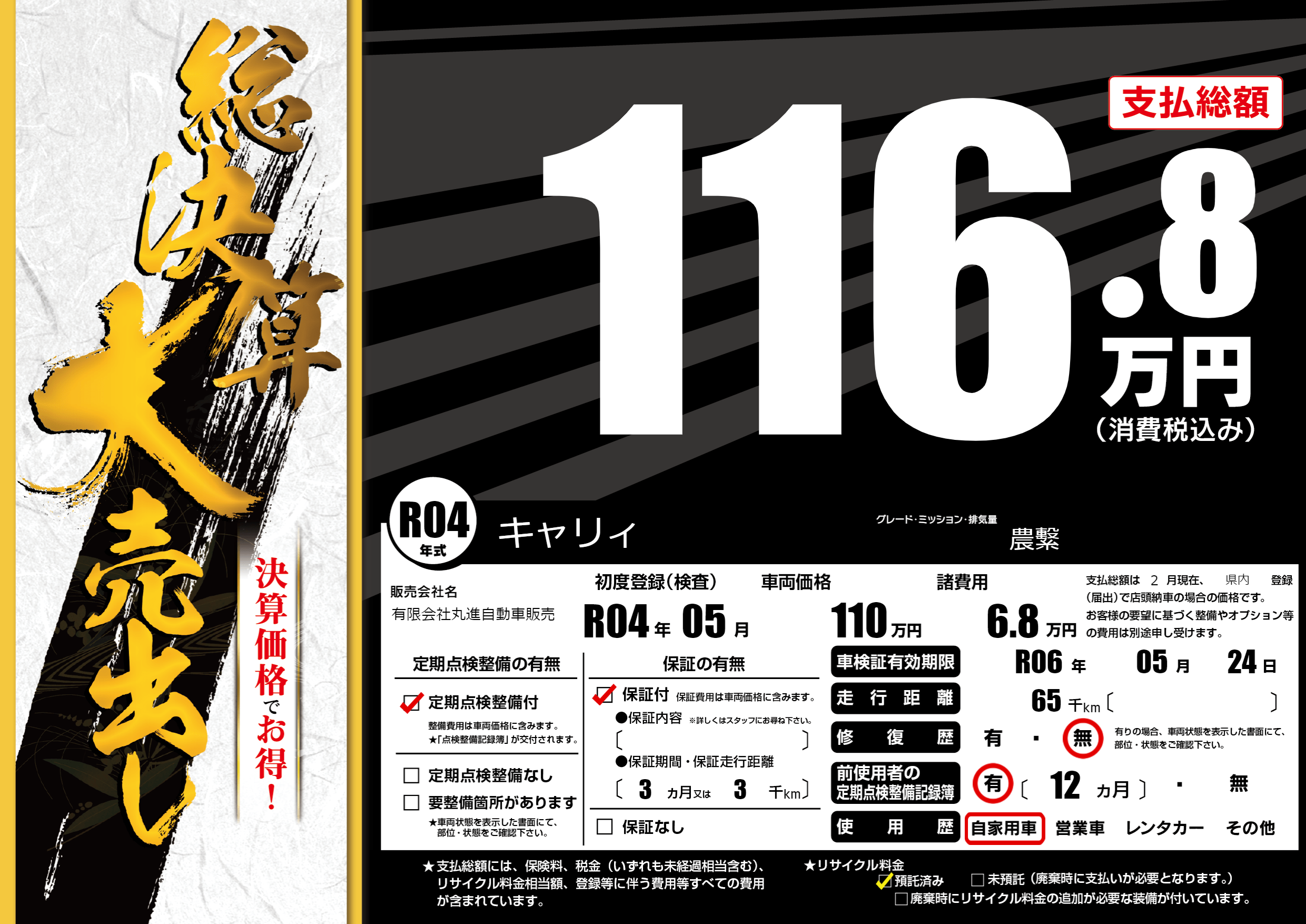 | 走行キロ | 6.5万km | 初年度登録 | R04年05月 |